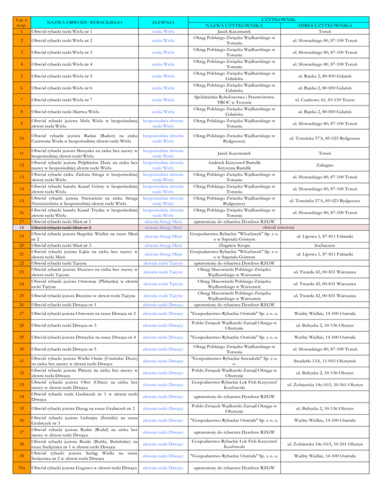 NAZWA UśYTKOWNIKA ADRES UśYTKOWNIKA 1 Obwód rybacki