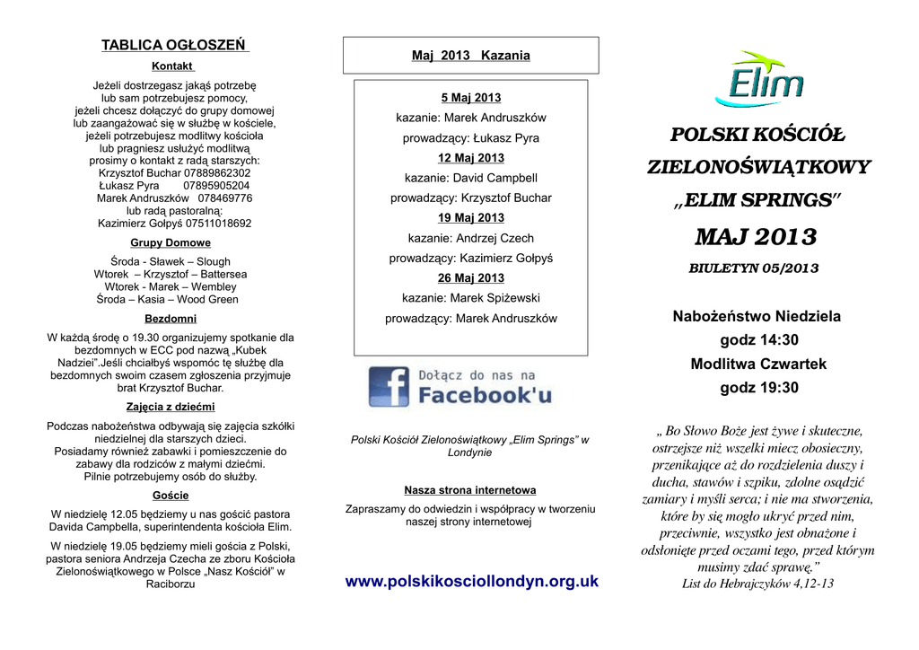 MAJ 2013 - Polski Kościół Chrześcijański Elim Springs w Londynie