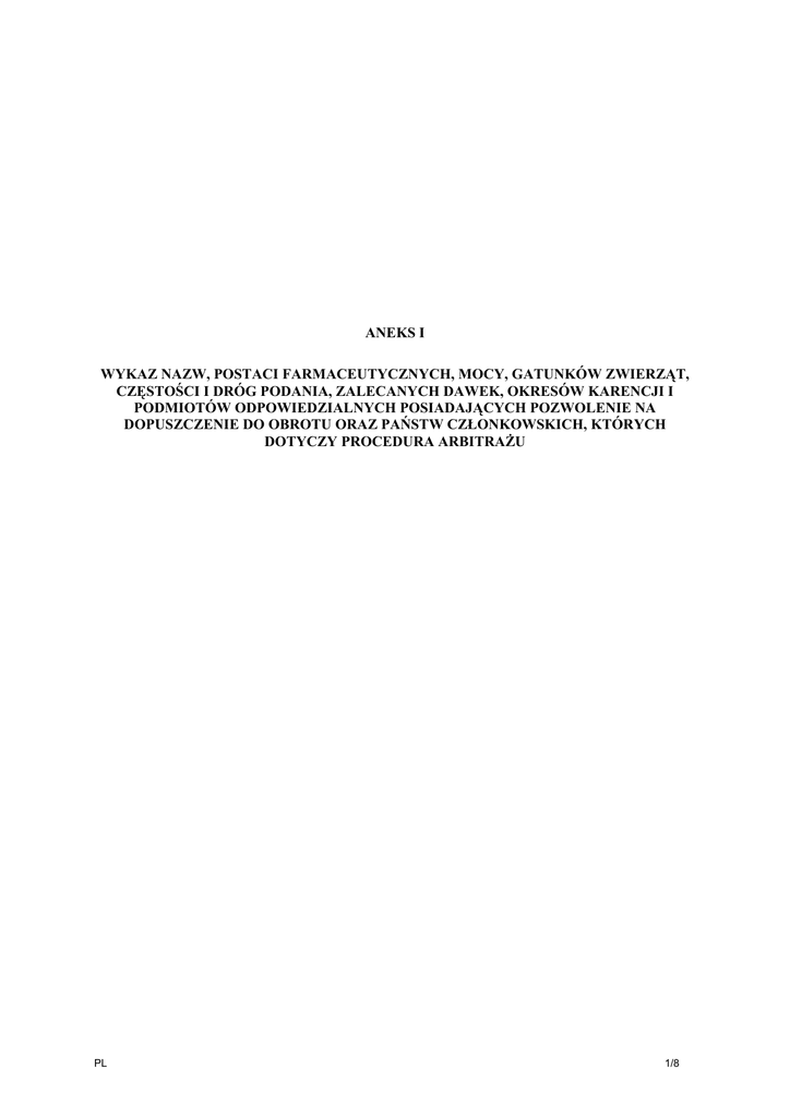 aneks i wykaz nazw, postaci farmaceutycznych, mocy