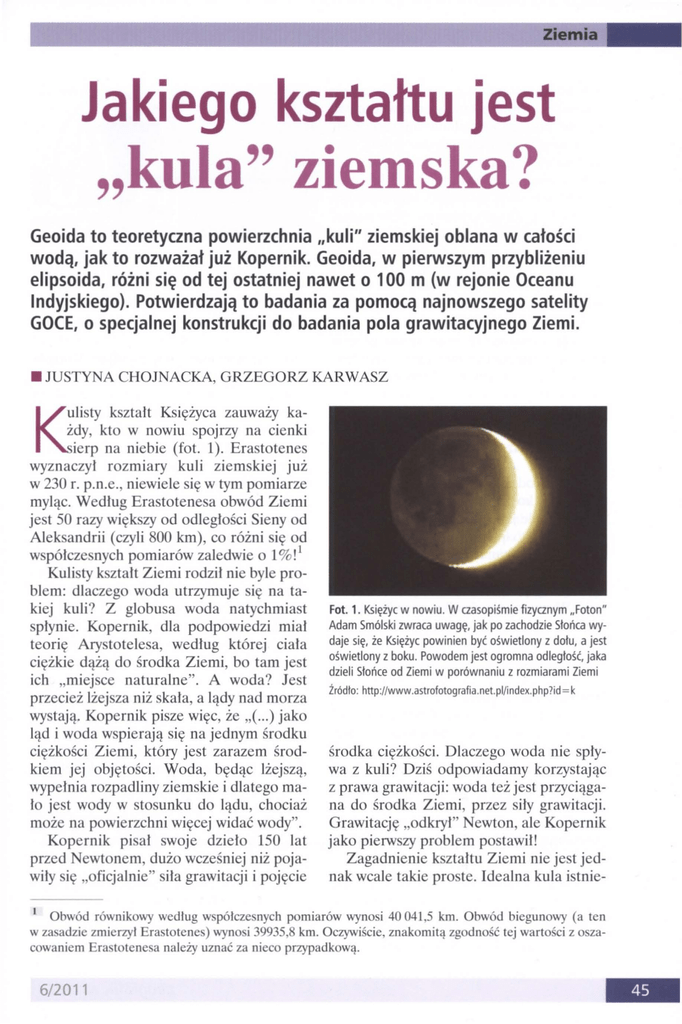 Fot. 1. Księżyc w nowiu. W aasopiśmie fizyanym "Foton"