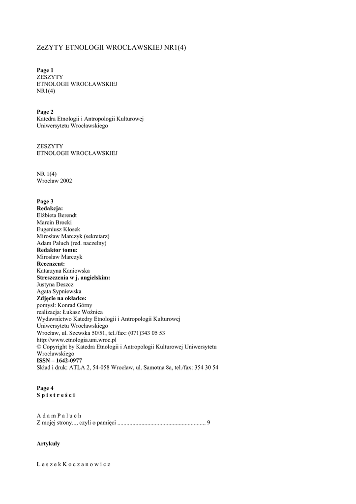 ZeZYTY ETNOLOGII WROCŁAWSKIEJ NR1(4)