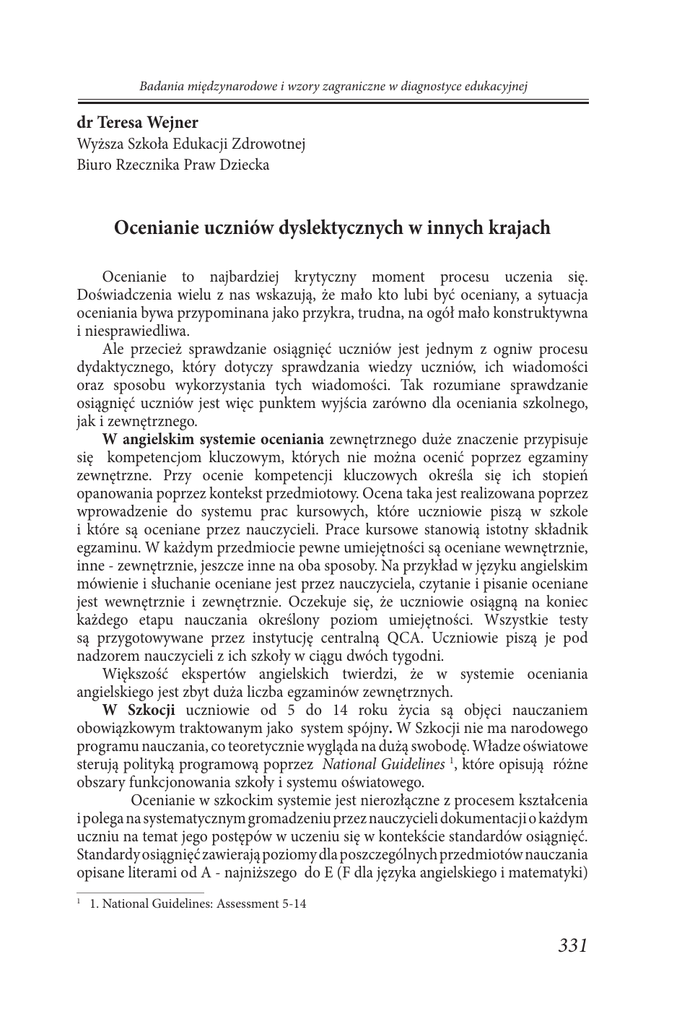 331 Ocenianie uczniów dyslektycznych w innych krajach
