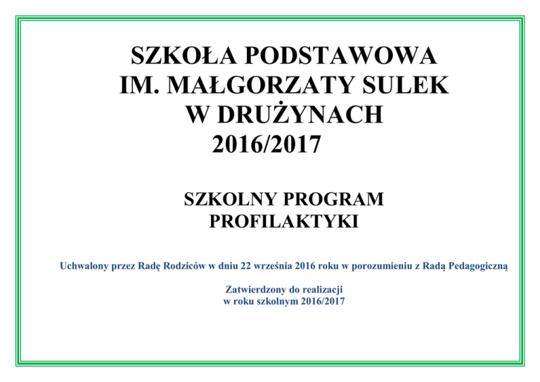 Program profilaktyczny - Szkoła Podstawowa im. Małgorzaty Sulek