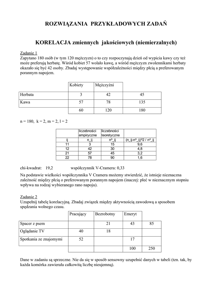 ROZWIĄZANIA PRZYKŁADOWYCH ZADAŃ KORELACJA