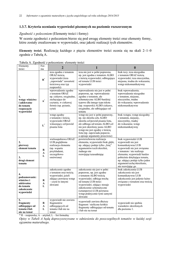 1.3.7. Kryteria oceniania wypowiedzi pisemnych na poziomie