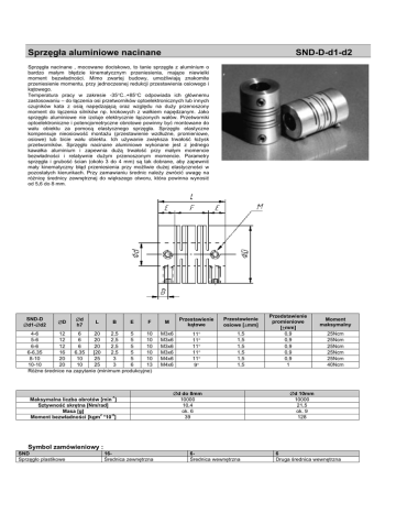 6SU] JáDDOXPLQLRZHQDFLQDQH 61''GG 6SU] JáD QDFLQDQH PRFRZDQH GRFLVNRZR WR WDQLH VSU] JáD ] DOXPLQLXP R EDUG]R PDá\P Eá G]LH NLQHPDW\F]Q\P SU]HQLHVLHQLD PDMFH QLHZLHONL PRPHQW EH]ZáDGQRFL 0LPR ]ZDUWHM EXGRZ\ XPR*OLZLDM ]QDNRPLWH SU]HQLHVLHQLHPRPHQWXSU]\MHGQRF]HVQHMUHGXNFMLSU]HVWDZLHQLDRVLRZHJRL NWRZHJR 7HPSHUDWXUD SUDF\ Z ]DNUHVLH q&q& RGSRZLDGD LFK JáyZQHPX ]DVWRVRZDQLX±GRáF]HQLDRVLSU]HWZRUQLNyZRSWRHOHNWURQLF]Q\FKOXELQQ\FK F]XMQLNyZ NDWD ] RVL QDS G]DMF RUD] Z]JO GX QD GX*\ SU]HQRV]RQ\ PRPHQW GR áF]HQLD VLOQLNyZ QS NURNRZ\FK ] ZDáNLHP QDS G]DQ\P -DNR VSU] JáR DOXPLQLRZH QLH L]ROXMH HOHNWU\F]QLH áF]RQ\FK ZDáyZ 3U]HWZRUQLNL RSWRHOHNWURQLF]QHLSRWHQFMRPHWU\F]QHREURWRZHSRZLQQ\E\üPRQWRZDQHGR ZDáX RELHNWX ]D SRPRF HODVW\F]QHJR VSU] JáD 6SU] JáR HODVW\F]QH NRPSHQVXMH QLHRVLRZRü PRQWD*X SU]HVWDZLHQLH Z]GáX*QH SURPLHQLRZH RVLRZH OXE ELFLH ZDáX RELHNWX ,FK X*\ZDQLH ]ZL NV]D WUZDáRü áR*\VN SU]HWZRUQLNyZ 6SU] JáR QDFLQDQH DOXPLQLRZH Z\NRQDQH MHVW ] MHGQHJR NDZDáND DOXPLQLXP L ]DSHZQLD GX* WUZDáRü SU]\ PDá\P PRPHQFLH EH]ZáDGQRFL L UHODW\ZQLH GX*\P SU]HQRV]RQ\P PRPHQFLH 3DUDPHWU\ VSU] JáD L JUXERü FLDQ RNRáR GR PP V WDN GREUDQH DE\ ]DSHZQLü PDá\ NLQHPDW\F]Q\ EáG SU]HQLHVLHQLD SU]\ PR*OLZLH GX*HM HODVW\F]QRFL Z SR]RVWDá\FK NLHUXQNDFK 3U]\ ]DPDZLDQLX UHGQLF QDOH*\ ]ZUyFLü XZDJ QD Uy*QLF UHGQLF\ ]HZQ WU]QHM GR ZL NV]HJR RWZRUX NWyUD SRZLQQD Z\QRVLü RGGRPP 61'' GG ' G K / % ( ) > 5y*QHUHGQLFHQD]DS\WDQLHPLQLPXPSURGXNF\MQH 0DNV\PDOQDOLF]EDREURWyZ>PLQ @ 6]W\ZQRüVNU WQD>1PUDG@ 0DVD>J@ 0RPHQWEH]ZáDGQRFL>NJP @ 6\PERO]DPyZLHQLRZ\ 61' 6SU] JáRSODVWLNRZH UHGQLFD]HZQ WU]QD 0 3U]HVWDZLHQLH NWRZH 3U]HVWDZLHQLH RVLRZH>rPP@ 0[ 0[ 0[ 0[ 0[ 0[ q q q q q q GGRPP RN UHGQLFDZHZQ WU]QD 3U]HGVWDZLHQLH SURPLHQLRZH >rPP@ 0RPHQW PDNV\PDOQ\ 1FP 1FP 1FP 1FP 1FP 1FP GPP RN 'UXJDUHGQLFDZHZQ WU]QD