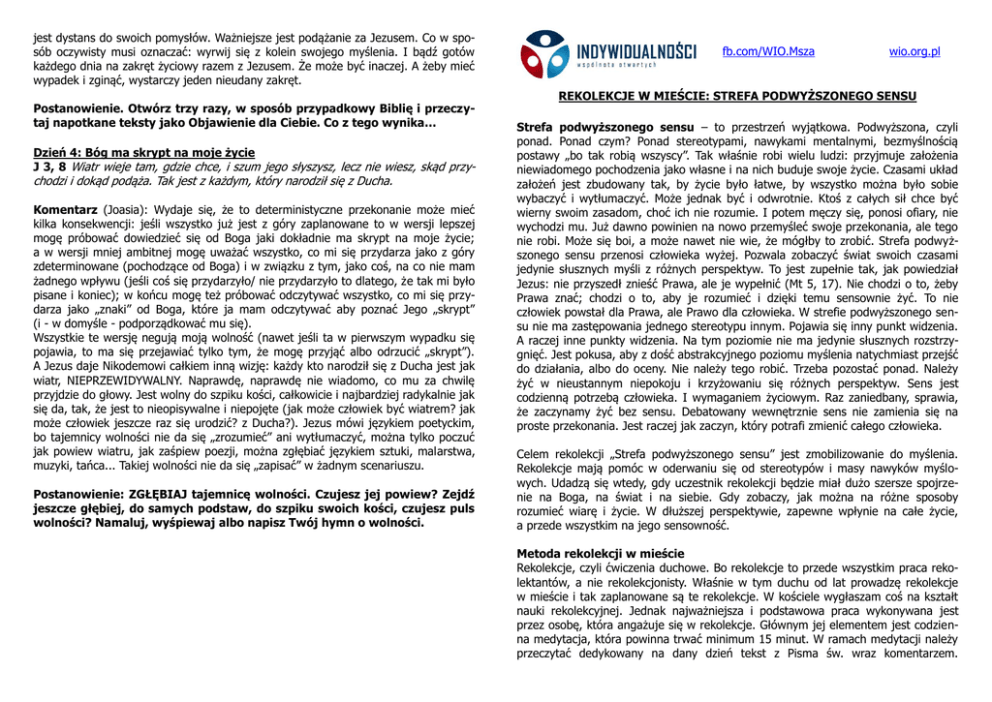 REKOLEKCJE W MIEŚCIE: STREFA PODWYŻSZONEGO SENSU