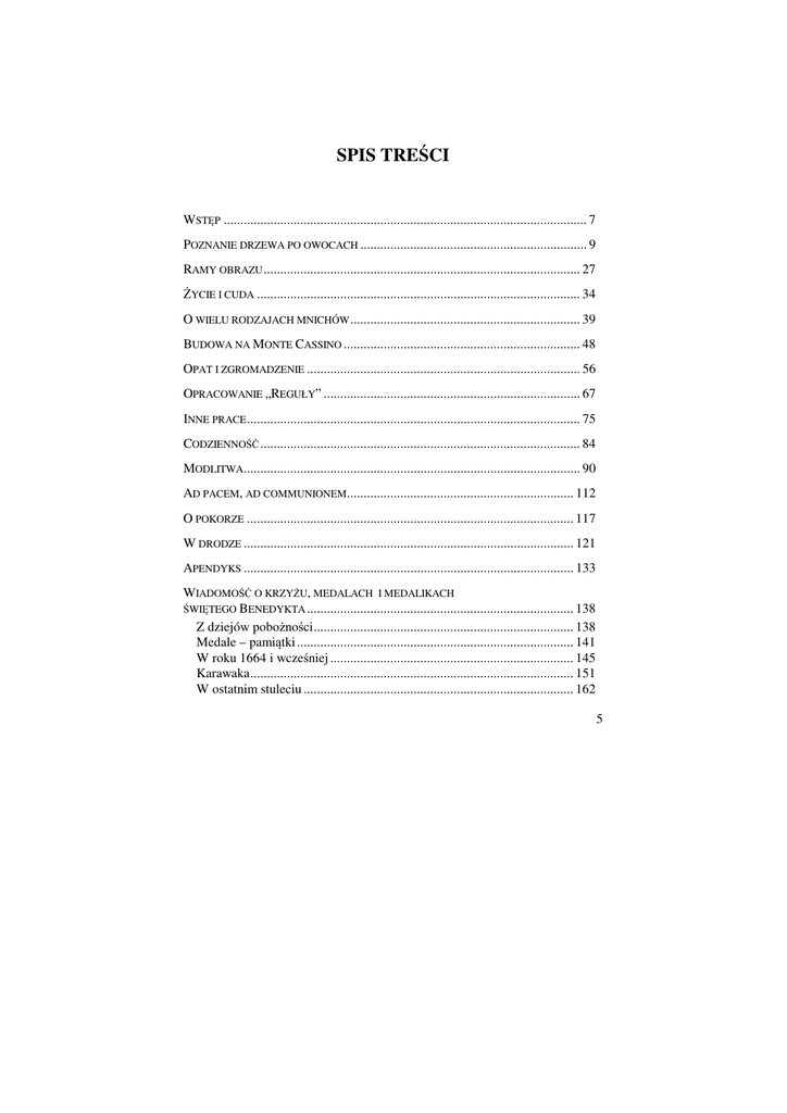 SPIS TREŚCI WSTĘP ............................................................................................................. 7 POZNANIE DRZEWA PO OWOCACH .................................................................... 9 RAMY OBRAZU ............................................................................................... 27 ŻYCIE I CUDA ................................................................................................. 34 O WIELU RODZAJACH MNICHÓW ..................................................................... 39 BUDOWA NA MONTE CASSINO ....................................................................... 48 OPAT I ZGROMADZENIE .................................................................................. 56 OPRACOWANIE „REGUŁY” ............................................................................. 67 INNE PRACE .................................................................................................... 75 CODZIENNOŚĆ ................................................................................................ 84 MODLITWA..................................................................................................... 90 AD PACEM, AD COMMUNIONEM.................................................................... 112 O POKORZE .................................................................................................. 117 W DRODZE ................................................................................................... 121 APENDYKS ................................................................................................... 133 WIADOMOŚĆ O KRZYŻU, MEDALACH I MEDALIKACH ŚWIĘTEGO BENEDYKTA ................................................................................ 138 Z dziejów pobożności .............................................................................. 138 Medale – pamiątki ................................................................................... 141 W roku 1664 i wcześniej ......................................................................... 145 Karawaka ................................................................................................. 151 W ostatnim stuleciu ................................................................................. 162 5 Medal św. Benedykta na dzień dzisiejszy................................................ 168 LIST APOSTOLSKI OJCA ŚWIĘTEGO JANA PAWŁA II NA 1500 ROCZNICĘ NARODZIN ŚW. BENEDYKTA ........................................................................................... 173 HOMILIA PAPIEŻA JANA PAWŁA II WYGŁOSZONA W NURSJI DNIA 23 MARCA 1980 ROKU ......................................................................... 190 Święty Benedykt Ojciec mnichów i pionier nowej cywilizacji .............. 190 HOMILIA PAPIEŻA JANA PAWŁA II WYGŁOSZONA DNIA 20 WRZEŚNIA 1980 ROKU W KOŚCIELE OPACTWA MONTE CASSINO DO KONGRESU OPATÓW KONFEDERACJI BENEDYKTYŃSKIEJ ............................................... 196 LIST PAPIEŻA JANA PAWŁA II NA JUBILEUSZ OPACTWA TYNIECKIEGO ........ 201 LIST OJCA ŚW. JANA PAWŁA II Z OKAZJI ROZPOCZĘCIA BENEDYKTYŃSKICH OBCHODÓW 1500-LECIA PRZYBYCIA DO SUBIACO ŚW. BENEDYKTA, PATRONA EUROPY ...................................... 204 6 WSTĘP „Gdy... nowa ziemia rodziła się w bólu” – z Hymnu Godziny Czytań na dzień ś w. Benedykta. Dobry gospodarz wybiera zawsze ze swego skarbca rzeczy nowe i stare. W historii zbawienia stare mają wciąż blask młodości i dlatego nie wahamy się jeszcze raz sięgnąć do postaci z szóstego wieku – świętego Benedykta, który stał na przełomie starożytności i średniowiecza, uczestnicząc w tym rodzeniu się nowej ziemi, stojąc u kolebki nowej Europy i obdarzając ją bogatą w trwałe wartości Regułą. Z całą pewnością i dzisiaj ludzkość stoi na znaczącym zakręcie swych dziejów. Niebywały postęp techniczny; zwłaszcza w dziedzinie informatyki i wytwarzania dóbr, rosnąca dysproporcja między bogactwem a biedą w skali indywidualnej i globalnej w połączeniu z zanikiem wartości etycznych u tak wielu ludzi, może doprowadzić do zmian w świecie na niewyobrażalną skalę. Jak się w tym wszystkim nie pogubić? Święty Benedykt chce dopomóc, wskazując nieustannie od z górą półtora tysiąca lat na modlitwę, pracę i szanowanie drugiego człowieka. Prosta to w zasadzie recepta, a jakże trudna do stosowania. Widzimy, co się dzieje, gdy programowo usuwa się z życia człowieka wymiar Absolutu, gdy pracować się nie chce lub przeciwnie tworzy się z pracy nowego bożka, gdy przy przekształceniach na wszystkich płaszczyznach życia ludzkiego nie szanuje się człowieczej godności. Święty Benedykt zdaje się wzywać: Idźcie sprawdzoną drogą. Zapewnia wam ona pokój we wszystkich jego aspektach. Przedstawiamy Drogim Czytelnikom już trzecie wydanie książki, którą przed szesnastoma laty napisał nasz Współbrat, śp. Ojciec Paweł Sczaniecki. Niedawno odszedł od nas, a wciąż pragnęlibyśmy, by jeszcze był między nami. Jego szeroka wiedza, którą dzielił się chętnie ze wszystkimi, Jego osobowość, styl bycia, kaznodziejstwo – to wszystko jeszcze w pewien sposób trwa w atmosferze Opactwa. Niech więc na nowo jeszcze wyraźniej zabrzmi to, co napisał był o ukochanym przez siebie i przez nas Założycielu. 7 Książkę prezentuje wydawnictwo TYNIEC. Założeniem naszym jest dostarczyć ludziom w naszym Kraju, a może i nie tylko, materiału do rozważań nad sensem życia współczesnego człowieka w czasie wielkich przemian, gdy nasza nowa ziemia „rodzi się w bólu”. Może za mało było w Polsce monastycznego czynnika w spojrzeniu na życie duchowe i możliwości rozwijania go w różnych środowiskach. Od sześciu więc lat próbujemy przybliżać naszym Czytelnikom świadectwa zarówno dawnych mnichów, jak i tych, którzy dzisiaj nazywają siebie mnichami, 