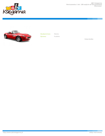 ABC Księgarnia Remiszewska 1 lok. 10B wejście od Gorzykowskiej Warszawa Wydawnictwo: Maisto Oprawa: Pudełko Cena brutto: http://www.abcksiegarnia.pl sklep internetowy
