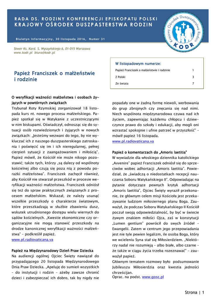31 nr Biuletynu Krajowego Ośrodka Duszpasterstwa Rodzin