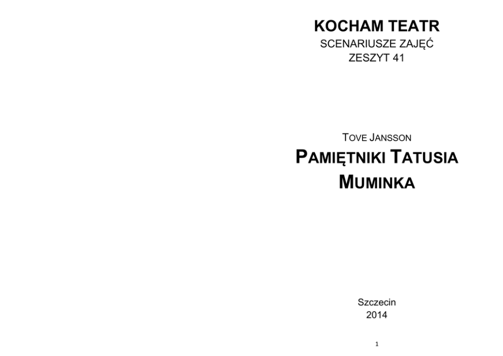 KOCHAM TEATR SCENARIUSZE ZAJĘĆ ZESZYT 41 TOVE JANSSON PAMIĘTNIKI TATUSIA MUMINKA Szczecin 2014 1 Skład i opracowanie: Paweł Wójcik Wydawca: TEATR LALEK „PLECIUGA” Pl. Teatralny 1 71-405 Szczecin tel.: 91/44 55 100 Opieka merytoryczna - doradcy metodyczni Zachodniopomorskiego Centrum Doskonalenia Nauczycieli w Szczecinie www.zcdn.edu.pl Szczecin, 2014 2 TOVE JANSSON TEATR LALEK „PLECIUGA” zaprasza widzów: • • • • • • na przedstawienia dla dzieci, młodzieży i dorosłych; do lektury gazetki teatralnej „Gabit”; na lekcje teatralne W trakcie 45 minutowego spotkania z aktorem po spektaklu można zapoznać się z niektórymi tajnikami jego pracy na scenie, zajrzeć w teatralne kulisy, zdobyć podstawową wiedzę o technikach lalkowych. na warsztaty teatralne dla grup zorganizowanych o Jeżeli chcecie poznać magiczny świat teatru, odkryć tajemnice warsztatu scenicznego, nauczyć się pracy z głosem i ciałem, zdobyć praktyczne umiejętności tworzenia lalek i elementów scenografii, zapraszamy. o Zainteresowanych nauczycieli przedszkoli, szkół podstawowych i ponadpodstawowych prosimy o kontakt telefoniczny (91/44 55 114) lub mailowy([email protected]) z Magdaleną Bogusławską. na warsztaty teatralne dla nauczycieli. PAMIĘTNIKI TATUSIA MUMINKA Spis treści: WSTĘP ......................................................................................................................4 Zeszyty metodyczne dostępne są w Biurze Obsługi Widzów TRANSPORT WODNY – BUDOWA STATKU. SCENARIUSZ ZAJĘĆ DLA UCZNIÓW KLASY II - III SZKOŁY PODSTAWOWEJ..............5 www.pleciuga.pl PAMIĘTNIK, DIARIUSZ, DZIENNIK, CO TO JEST? SCENARIUSZ ZAJĘĆ ZINTEGROWANYCH DLA KLASY III SZKOŁY PODSTAWOWEJ . 11 Teatr Lalek „Pleciuga” pl. Teatralny 1 71- 405 Szczecin tel./fax.: 91/ 433 58 04 NIEZWYKŁE MORSKIE OPOWIEŚCI, CZYLI… SCENARIUSZ ZAJĘĆ DLA KLAS 4-6 SZKOŁY PODSTAWOWEJ ................................. 15 PODRÓŻ DO PRZESZŁOŚCI. KONSPEKT LEKCJI JĘZYKA POLSKIEGO DLA KLASY PIERWSZEJ GIMNAZJUM ........ 18 91/44 55 114 22 3 Pamiętnik WSTĘP Blog Podobieństwa: Skąd się wzięły Muminki? W dzieciństwie Tove Jansson słuchała opowieści swojego wujka o pewnych zimnych trollach, które myszkowały w spiżarni. Stworki te zamieszkały na dobre w głowie młodej dziewczyny i stały się jej bliskimi przyjaciółmi. Pierwsze Muminki zupełnie nie przypominały tych, które znamy. Były bardziej podobne do Hatifnatów. Przez jakiś czas zmieniały się ich kolory i kształty, aż w końcu pisarka stworzyła wersję ostateczną i przedstawiła ją w książce Małe trolle i duża powódź. Dzisiaj Muminki należą do jednych z najpopularniejszych bohaterów literatury dziecięcej. Znają je wszyscy, dorośli i dzieci. A jeśli ktoś jeszcze nie zdążył się z nimi zapoznać, ma ku temu świetną okazję – spektakl Pamiętniki Tatusia Muminka w Teatrze Lalek „Pleciuga”. W zapowiedzi tego przedstawienia możemy przeczytać: Różnice: "Pamiętniki Tatusia Muminka", sceniczna adaptacja jednego z tomów serii "Muminki" Tove Jansson, to zabawna, wzruszająca, chwilami pełna grozy i nieco melancholijna opowieść o minionej młodości, wielkich marzeniach, pierwszych przyjaźniach i poznawaniu świata. To także historia tworzenia się domu rodzinnego i hołd temu, co każdy z nas nosi w sobie i pielęgnuje: wspomnieniom. Na pewno nikt się nie będzie nudził, oglądając ten spektakl. Oprócz wartkiej akcji i pełnych wzruszeń momentów, zachwyci nas też muzyka (żwawe szanty w wykonaniu aktorów) oraz lalki Muminków, które wyglądają jak wyjęte z czarno – białego telewizora. Naprawdę warto pokazać tę sztukę dzieciom w różnym wieku – od przedszkola do gimnazjum. Mamy nadzieję, że propozycje scenariuszy zajęć zamieszczone w tym numerze Zeszytu Kocham Teatr będą inspiracją do twórczych działań i zachęcą Państwa do zaproszenia Muminków na ciekawą lekcję. - Podsumowanie (2 min.) - Lidia Wasilewska - nauczycielka języka polskiego w Szkole Podstawowej nr 54 w Szczecinie Na podstawie zebranych informacji uczniowie udowadniają, podając odpowiednie przykłady, że obejrzany spektakl zrealizowany na podstawie książki T. Jansson spełnia cechy pamiętnika. (4 min.) Uczniowie wyjaśniają, czego dowiedzieli się na lekcji. Zadanie domowe (1 min.) Na postawie poznanych zasad zredaguj trzy kartki pamiętnika wybranej postaci spektaklu. Opracowała Anna Pawłowska 4 21 Zebrane informacje zapisane zostają w tabelce (10 min.) SCENARIUSZ ZAJĘĆ DLA UCZNIÓW KLASY II - III SZKOŁY PODSTAWOWEJ Pamiętnik Dziennik Podobieństwa: Blok tematyczny: „Rodzaje transportu” Temat: Transport wodny – budowa statku. Cele ogólne: - rozbudzanie wyobraźni, - rozwijanie umiejętności manualnych. Różnice: Cele operacyjne: Dziecko: - wie, jak zachować się w teatrze i co to znaczy świat fikcyjny, - wypowiada się samodzielnie na dany temat, - wyodrębnia elementy scenografii, środków scenicznych, - omawia treści zawarte w sztuce teatralnej, - określa cechy charakteru bohaterów, - wyodrębnia przebieg wydarzeń, - omawia grę aktorów, - wyodrębnia wskazane słowa podczas spektaklu, - poznaje znaczenie słów: autokrata, wagabunda, barometr, sterówka, reling, wodowanie, kotwica, - poznaje nowe słowa w języku angielskim, - umie wymawiać, zapisać i stosować w praktyce nowopoznane słowa w języku angielskim, - uzupełnia dorysowując brakujące elementy na rysunku, - poprawnie przepisuje tekst, - gra w gry dydaktyczne, 20 5 - wykonuje pracę plastyczno - techniczną korzystając ze swojej wyobraźni, Co było słabą stroną przedstawienia? - rozwiązuje zadania tekstowe, O czym opowiadał spektakl? - potrafi współpracować w zespole, Część właściwa (32 min.) - tworzy kartę z pamiętnika. Metody: • Uczniowie podają przykłady, w jaki sposób można wrócić do przeszłości • Burza mózgów: - mini wykład, Uczniowie do wyrazu