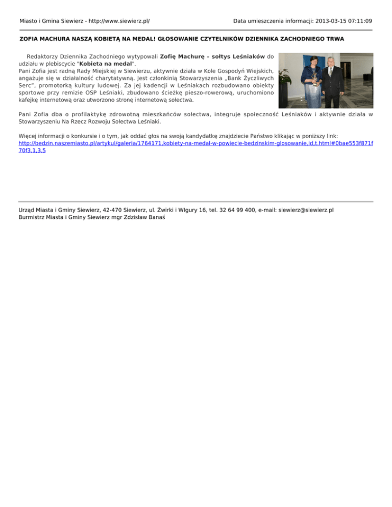 Miasto i Gmina Siewierz - http://www.siewierz.pl/ Data umieszczenia