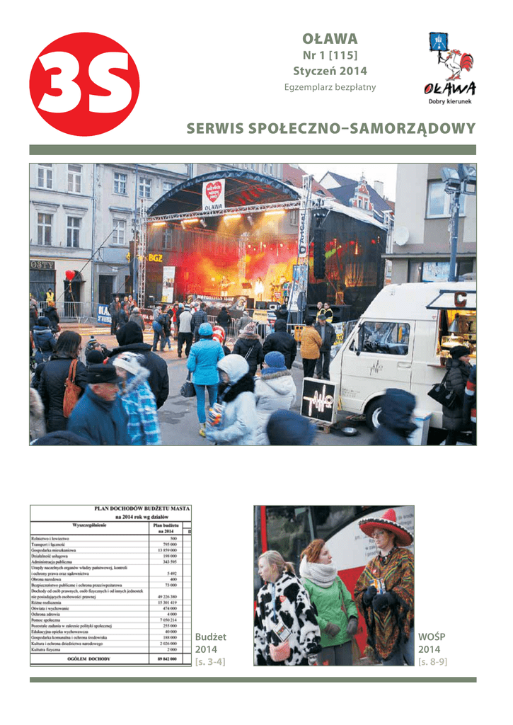 OŁAWA Nr 1 [115] Styczeń 2014 Egzemplarz bezpłatny SERWIS SPOŁECZNO–SAMORZĄDOWY Budżet 2014 [s. 3-4] WOŚP 2014 [s. 8-9] Serwis Społeczno–Samorządowy | Nr 1 [115] | Styczeń 2014 Serwis Społeczno-Samorządowy Wydawca: Urząd Miejski w Oławie 55-200 Oława Plac Zamkowy 15 tel. 71 303 55 01 fax. 71 303 55 00 e-mail: [email protected] www.um.olawa.pl Zespół redakcyjny: Ewa Szczepanik Renata Romanowska Andrzej Łabowski Adres redakcji Oława, Rynek - Ratusz Tel. 71 301 10 18, 71 301 10 17 e-mail: [email protected] Druk: Drukarnia Euro-Druk ul. Zawadzkiego 22 57-100 Strzelin ISSN 1733 - 6449 Pytajcie o nasz serwis • w sklepach PSS: „Jakub” na Os. Sobieskiego, „Kwadraciak” przy ul. B. Chrobrego, „Tani Sklep” na pl. Gimnazjalnym, „Sezam” przy ul. Dąbrowskiego i DH „Na Brzeskiej” oraz w „Intermarche”, kiosk w supermarkecie „Kaufland”, „Eco” przy ul. Kasprowicza; • w następujących instytucjach i zakładach pracy: Urząd Miejski (punkt informacyjny na parterze), Starostwo Powiatowe, Urząd Gminy, jednostki podległe Urzędowi Miejskiemu, wszystkie szkoły w mieście, biblioteki, większe zakłady pracy oraz kilka kiosków gazetowych. 2 Oławianie po raz kolejny udowodnili, że mają wrażliwe serca i potrafią pomagać innym. O wolontariuszach oraz o imprezach, odbywających się na oławskim Rynku podczas 22. Finału Wielkiej Orkiestry Świątecznej Pomocy, piszemy na str. 8-9. Również w styczniu odbyły się noworoczne zawody strzeleckie, zorganizowane przez LOK – relacja na str. 10. Wszystkich, którzy chociaż w myślach chcą wrócić do minionych świąt Bożego Narodzenia, zapraszam do przeczytania na str. 12-13 tekstu o przedświątecznych działaniach uczniów Gimnazjum nr 1. A poza opisywanymi wydarzeniami kulturalnymi i sportowymi trwa codzienna praca. Rada Miejska na grudniowej sesji uchwaliła budżet miasta na rok 2014 (str. 3-4). Przyjęła także plan pracy na ostatni rok bieżącej kadencji (str. 5). Korzystając z łagodnej jak dotąd zimy, wykonawcy nie przerywają prac na oławskich inwestycjach – na str. 6 zdjęcia z budowy obiektu socjalnego i z Przedszkola nr 4, gdzie trwa termomodernizacja. W kolejnym numerze zaprezentujemy zaawansowanie modernizacji dawnego kina „Odra” na Ośrodek Współpracy Europejskiej. Miejski Ośrodek Pomocy Społecznej na str. 7 informuje o naborze do projektu „Zainwestuj w lepsze jutro” Udział w nim jest bezpłatny. Zachęcam też mieszkańców naszego miasta do skorzystania z bezpłatnego systemu ostrzegania i informowania za pomocą SMS. To wygodny sposób pozyskiwania informacji nie tylko o zagrożeniach, czy planowanych przerwach w dostawie prądu, ale również o wydarzeniach kulturalnych i sportowych w mieście – szczegóły na str. 14. Z wyrazami szacunku W numerze BUDŻET 2014 UCHWALONY [ES] – 3-4 PLAN PRACY RADY MIEJSKIEJ NA 2014 ROK – 5 OŁAWSKIE INWESTYCJE – 6 PUNKTY SELEKTYWNEJ ZBIÓRKI ODPADÓW – 7 „ZAINWESTUJ W LEPSZE JUTRO” – NABÓR DO PROJEKTU – 8 OŁAWIANIE PODAROWALI 74 697,58 ZŁOTYCH [WN] – 9-10 NOWOROCZNE ZAWODY STRZELECKIE [E. ENGEL] – 11 KOMUNIKAT WKU – 12 CZAS OCZEKIWANIA W GIMNAZJUM NR 1 – 13-14 JUBILEUSZE POŻYCIA MAŁŻEŃSKIEGO [MS] – 14 SYSTEM OSTRZEGANIA I INFORMOWANIA ZA POMOCĄ SMS – 15 POZNAJ OŁAWĘ I FOTOKTOTO – 15 DAWNA I WSPÓŁCZESNA OŁAWA – 16 Styczeń 2014 | Nr 1 [115] | Serwis Społeczno–Samorządowy Budżet 2014 uchwalony Na grudniowej sesji Rada Miejska uchwaliła budżet miasta na rok 2014 oraz wieloletnią prognozę finansową na lata 2014 – 2022. Wcześniej, zgodnie z obowiązującą procedurą, burmistrz Franciszek Październik omówił projekt budżetu, a także przedstawił pozytywną opinię Regionalnej Izby Obrachunkowej. Opinie stałych komisji Rady na temat zaprezentowanego projektu budżetu przedstawił przewodniczący Andrzej Mikoda, a opinię Komisji Finansów odczytał Jan Tkaczyk, który kieruje jej pracą. Burmistrz przedstawiając budżet, wymienił podstawowe wskaźniki, brane pod uwagę przy jego opracowywaniu: • wzrost cen towarów i usług – 2,4% • udział miasta w podatku dochodowym od osób fizycznych w wysokości 37,53% – jest to wzrost o 0,11% w porównaniu z rokiem 2013 • składka na fundusz pracy – 2,45% • podatki i opłaty lokalne – średni wzrost o 3,4% • subwencja oświatowa – wzrost o 2,19%. Po uwzględnieniu tych wskaźników dochody wynoszą 89 842 000 zł, w tym dochody bieżące – 81 773 490 zł i dochody majątkowe – 8 068 510 zł. Dochody zaplanowano w sposób realny i są one możliwe do zrealizowania w roku 2014. Wydatki z budżetu miasta wynoszą 91 842 000 zł, w tym bieżące – 79 342 000 zł oraz inwestycyjne – 12 500 000 zł. Planowany deficyt wynosi 2 mln, tj. o jeden milion mniej niż w roku 2013. Kredyt na rok 2014 ma wynieść 8 306 900 zł i jest przeznaczony na pokrycie deficytu oraz spłatę zobowiązań kredytowych. Jest on też niższy około jeden mln zł niż w roku 2013. Do ważniejszych zadań inwestycyjnych, zaplanowanych na rok 2014, należy zaliczyć: • zakończenie (w czerwcu) budowy Centrum Współpracy Europejskiej, • zakończenie (do końca sierpnia) prac adaptacyjnych w budynkach przy ul. 3 Maja – na potrzeby MOPS i organizacji pozarządowych, • zakończenie budowy budynku socjalnego (IV kwartał 2014) przy ul. Zwierzyniec Duży – 35 mieszkań, • inwestycje drogowe kosztem ok. 1,5 mln zł – m.in. ulice: Brzechwy, Magazynowa i część Małopolnej, • wykonanie dokumentacji projektowej na drogi osiedla Zaodrze: Sokola – Krucza, • dokapitalizowanie spółek miejskich: MZEC – 500 tys. zł i Baseny „Termy Jakuba” – 500 tys. zł, • kontynuowanie realizacji projektów wspieranych ze środków unijnych. Zadłużenie na koniec 2013 r. wynosi 38 230 600, co stanowi ok. 40% dochodów budżetu miasta. Budżet na rok 2014 jest bezpieczny i gwarantuje płynność finansową. Planowane dochody