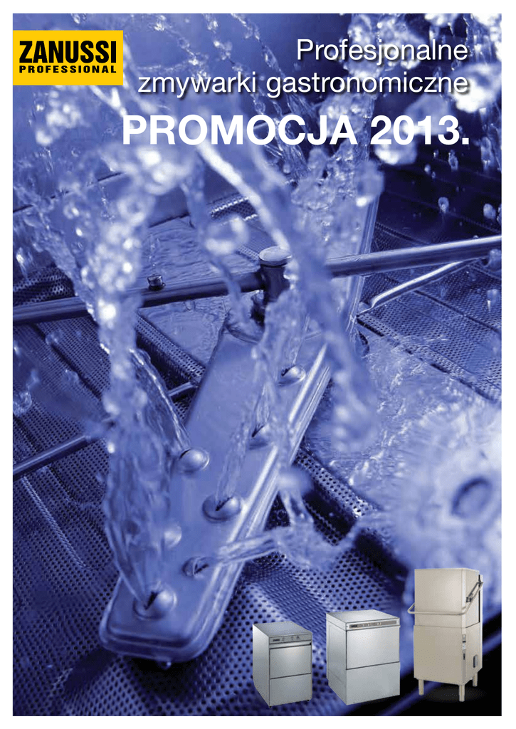 Profesjonalne zmywarki gastronomiczne PROMOCJA 2013. Zmywarka do szkła Idealna dla barów… • Doskonała higiena i lśniące szkło dzięki perfekcyjnemu myciu i płukaniu • funkcja Soft Start chroni szkło przed uszkodzeniem • Zaokrąglone kąty komory i pojemnika w celu łatwego czyszczenia, nierdzewne ramiona do mycia i płukania, łatwo wyjmowalne do czyszczenia Podblatowa zmywarka do naczyń Wspaniały pomocnik dla Waszej placówki… W każdym cyklu myjącym niezawodnie zmyje aż 18 talerzy. Wysoka wydajność • Wydajna pompa myjąca • 5,8 l bojler • 2 programy mycia (120 i 180 s) • Soft start bezpiecznie chroni naczynia i szkło przed uszkodzeniem • Wydajność do 540 talerzy albo 1900 szklanek na godzinę • Możliwość wyboru podłączenia 230V/1N albo 400V/3N Higiena • Całkowicie zautomatyzowany cykl samooczyszczający • Gładkie powierzchnie i zaokrąglone kąty komory i pojemnika w celu łatwego czyszczenia, ramiona do mycia i płukania, łatwo wyjmowalne do czyszczenia • Gwarantowana temperatura wody do płukania min. 82,5°C Niezawodność • Elektroniczny panel sterowania z cyfrowym wyświetlaczem • Główne komponenty dostępne z przodu. IPX4 • Wszystkie panele, komora myjąca z pojemnikiem wyprodukowane ze stali nierdzewnej AISI304 Kapturowa zmywarka do naczyń Pomocnik z wydajnością do 1440 talerzy /godz. albo 80 koszy/godz. Niskie koszty eksploatacyjne • Automatyczny start programu przy zamknięciu pokrywy • Bardzo skuteczny system płukania zużywa tylko 2 l wody na 1 kosz i obniża koszty eksploatacji (energię, zużycie wody oraz środków do mycia i płukania) • Całkowicie zautomatyzowany program samooczyszczający utrzymuje zmywarkę higienicznie czystą • Soft Start funkcja niezawodnie chroni naczynia przed uszkodzeniem • Profesjonalne zmywarki Zanussi oszczędzają nie tylko Państwa pieniądze, ale również dzięki niskiemu zużyciu również środowisko naturalne Nowy bojler z nierdzewnej stali A304L spawany jest w ochronnej atmosferze w celu wyższej ochrony przeciwko korozji chlorowaną wodą. 12 litrowy bojler ciśnieniowy i 9kW element grzewczy zawsze zapewniają temperaturę płukania ponad 85°C podczas całego cyklu płukania. Bezpieczne płukanie: rozpoczęcie płukania związane jest z osiągnięciem prawidłowej temperatury płukania. 9.999 PLN 5.299 PLN 4.799 PLN Zmywarka do szkła Podblatowa zmywarka do naczyń Kapturowa zmywarka do naczyń NGWDPDD 402071 NUC3DP 400146 NHT8 505071 460x565x715 600x610x820 746x755x1549 395 x 395 500x500 500x500 290 30 330 30 540 440 80 1440 300-1500 750-1900 1600 - 3200 5 2,3 5,8 3 12 2 Funkcja Soft Start Pompa odpływowa Dozownik czynnika wspom. płukanie Dozownik detergentu • • • • • • • • Ilość cykli 1 2 3 3,3kW; 230V/1N/50Hz 5,35kW 400V/3N/50Hz, 230V/1N/50Hz 9,9kW 400V/3N/50Hz, 230V/1N/50Hz ZW (~20°C)G3/4” *CW (50°C)G3/4” *CW (50°C)G3/4” Model Wymiary zewnętrzne – mm (sxgxw) Wymiary kosza - mm Wysokość komory - mm Wydajność – kosze / godz Wydajność – talerze / godz Wydajność – szklanki / godz Pojemność bojlera - l Zużycie wody – l / cykl Napięcie zasilania Woda zasilająca Wyposażenie w cenie • 1 kosz na szklanki (w=100mm) 1 kosz na 18 talerzy + 1 na stućce Prosta instalacja i obsługa,120 s cykl. Program autoczyszczący, cyfrowy wyświetlacz. Ogólne Model przystosowany do instalacji zewnętrznego dozownika środka myjącego. 1 kosz na 18 talerzy + 1 na stućce Bojler atmosferyczny z pompą płukania. Program autoczyszczący. Cyfrowy wyświetlacz. Dozownik środka do płukania. System samodiagnostyczny. * Możliwość podłączenia również na zimną wodę. Czasy programów mycia mogą się przedłużyć w przypadku gdy temperatura zasilającej wody jest niższa niż wymagana. W celu uzyskania dalszych informacji, kontaktujcie się z nami lub naszym partnerem handlowym: Tel. + 421 2 32 14 13 59 Email: [email protected] Electrolux Slovakia s.r.o., Galvaniho 17/B, 821 04 Bratislava, Slovakia Bezpośredni kontakt dla Państwa: Ekstra osprzęt zamawiany jest odrębnie. Ceny podane w ofercie nie zawierają VAT, transport, montaż i dokonanie rozruchu. Warunkiem gwarancji jest instalacja przez fachowy serwis. Oferta promocyjna ważna jest od 18.4.2013 do 31.7.2013.