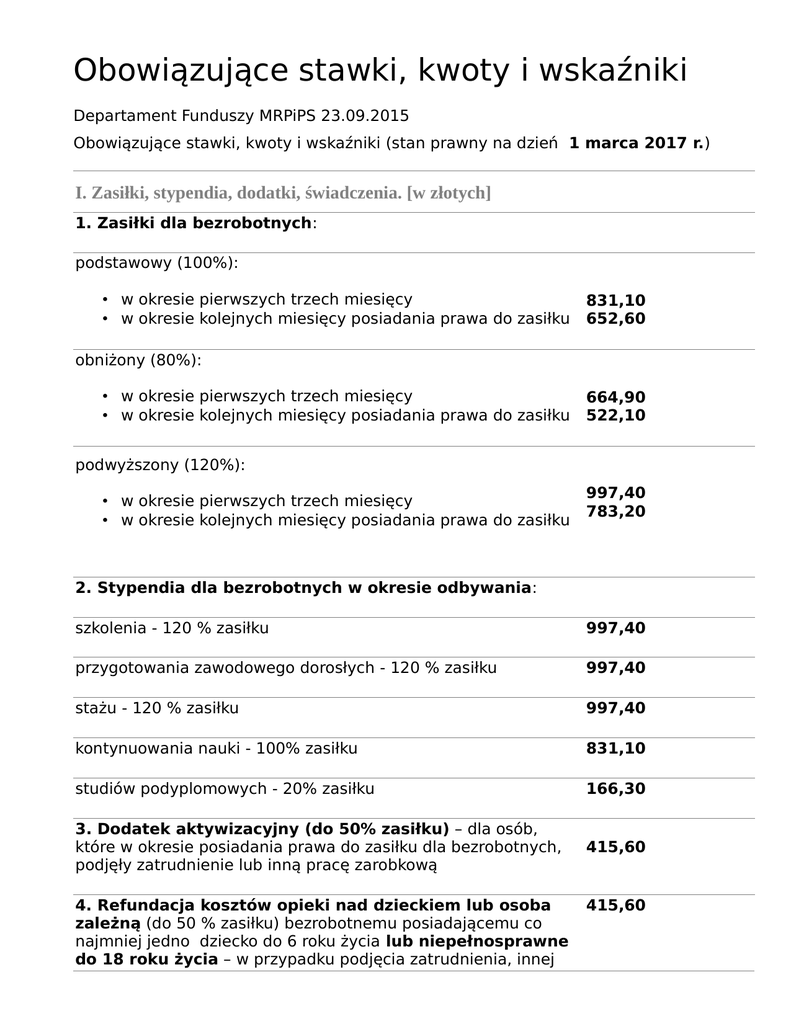 Obowiązujące stawki, kwoty i wskaźniki (stan prawny na dzień 1 marca 2017 r.)