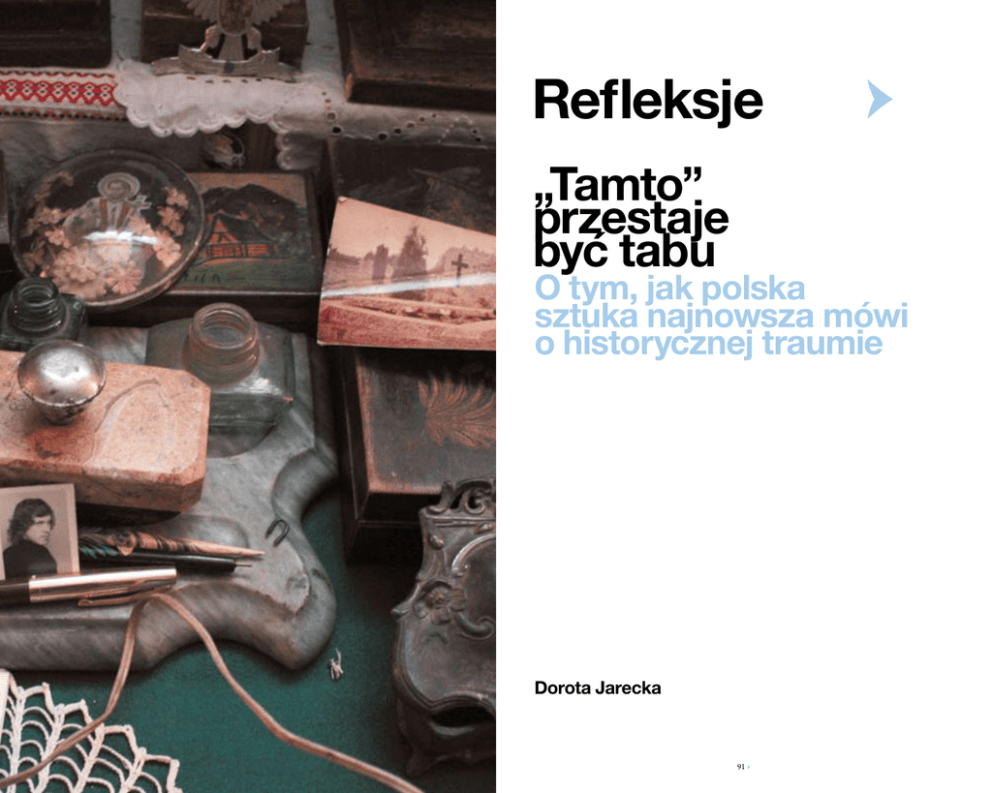 Refleksje „Tamto” przestaje być tabu O tym, jak polska sztuka najnowsza mówi o historycznej traumie Dorota Jarecka 90 → 91 → Refleksje. Dorota Jarecka → Przyglądając się sztuce polskiej powstałej w ostatnich latach, trudno nie zauważyć pewnej zmiany. Co ją spowodowało, czy jest to zmiana pokoleniowa, czy wynika z edukacji historycznej, wolności badań i publikacji po 1989 roku – to osobne pytanie, warte namysłu. Jakiekolwiek byłyby przyczyny, mamy do czynienia z niebywałym zainteresowaniem artystów traumatycznymi wydarzeniami z historii, w tym wydarzeniem dla polskiego doświadczenia kluczowym – Zagładą Żydów. Tabuś – tak Ewa Kuryluk tytułuje swoją instalację z 2005 roku, poświęconą matce i bratu, którzy długo po wojnie byli poddani niszczącemu działaniu wojennej traumy. „To zdrobnienie od tabu, w jakim żyła mama” – wyjaśnia artystka1. Właśnie – temat, który wcześniej był tabu, przestaje być tabu. Co nie znaczy, że wcześniej temat ten nie był w sztuce poruszany. Polska literatura powojenna – Borowski, Różewicz – rodzi się z doświadczenia wojny i Zagłady. Pomnik Powstania w getcie warszawskim Natana Rapaporta z 1948 roku był pierwszym pomnikiem lewobrzeżnej Warszawy. W 1945 roku Władysław Strzemiński pracuje nad wstrząsającym cyklem kolaży Moim przyjaciołom Żydom, poświęconym ofiarom Zagłady. W latach 50. powstają ryciny Marka Oberländera z cyklu Nigdy więcej Getta i jego obraz Napiętnowani, a Izaak Celnikier maluje monumentalne Getto. Można też zaryzykować tezę popartą mniej znanymi szkicami Andrzeja Wróblewskiego, że jego Rozstrzelania, cykl obrazów z 1949 roku, są poświęcone Zagładzie, że przynajmniej część tych scen dzieje się w getcie. Wśród artystów którzy na różne sposoby podejmowali ten temat byli ocaleni: Jonasz Stern, Erna Rosenstein, Alina Szapocznikow. Za każdym razem – co jest bardzo ciekawe – kwestionowali własną stylistykę, rozbijając ją obcym wtrętem, odnoszącym się do osobistej lub zbiorowej traumatycznej pamięci. Trzeba pamiętać, że były to wyjątki. Marzec 1968 roku jest tu szczególną cezurą, w latach 1968-1989 problematyka Holokaustu i obecności Żydów w kulturze polskiej była wymazywana z oficjalnego dyskursu. W pokoleniu, które przeżyło, tabu związane z napiętnowaniem zostało wzmocnione przez oficjalną politykę, koncentrującą się na polskiej martyrologii. Dzisiaj jest inaczej, wolno wszystko powiedzieć. Choć przekonanie, że dopiero teraz dzieje się coś naprawdę istotnego, byłoby fałszywym złudzeniem. Dzieje się coś innego. Na czym polega zmiana? 92 → Sztuka Zagłady Koniec sierpnia 2009 roku. Otwieram kopertę. Zaproszenie z Galerii Bielskiej BWA informuje, że na fasadzie galerii zawisły właśnie dwie wielkie fotografie – reprodukcje archiwalnych zdjęć. Jedna przedstawia synagogę w Bielsku-Białej przed wojną, druga ten sam budynek po zburzeniu przez Niemców we wrześniu 1939 roku. W tym miejscu stoi dzisiaj BWA, budynek z lat 60. Wrzesień 2009 roku. Otwieram pocztę z galerii BWA w Jeleniej Górze. Zaproszenie na wykład Agnieszki Kłos „Sztuka Zagłady”. Nie wiem, czy tytuł jest akurat dobrze dobrany, a może specjalnie tak miał brzmieć: niełatwo, kontrowersyjnie, bo przedmiotem wykładu są losy kobiecej orkiestry w Birkenau. Sierpień 2009 roku. Zaproszenie z Galerii 87 w Łodzi. Wystawa „Getto terra incognita” – cudem ocalałe fotomontaże Ariego Ben Menachema i Mendla Grosmana dokumentujące życie w getcie. To tylko nieliczne przykłady wydarzeń z obszaru sztuki, które mówią o Zagładzie. To coś poważniejszego i głębszego niż świętowanie rocznic. Zwróćmy na przykład uwagę na specyfikę gestu, jakim jest zawieszenie zdjęć bielskiej synagogi na fasadzie BWA. Czy dalej można twierdzić, że takie publikacje, jak Sąsiedzi i Strach Jana Tomasza Grossa nic nie zmieniły w polskiej świadomości? Ten gest to przecież rozliczenie z własną powojenną historią, deklaracja: żyliśmy w kłamstwie, żywiąc się złudzeniem, że wszystko jest w porządku, bo organizujemy wystawy sztuki w budynku specjalnie w tym celu zbudowanym, bez obciążeń. Tymczasem jest inaczej. Pracowaliśmy w miejscu, gdzie stała synagoga, ale też i dzięki temu, że została zburzona. Tablicę z brązu, upamiętniającą ten fakt, można zobaczyć na murach BWA od podwórka, kilka lat temu jeszcze jej nie było. Z tej samej galerii przychodzi też inne zaproszenie – wystawa Agnes Janisch pt. „Ogród niewiniątek”. Ma to być „instalacja złożona z 11 krzaków róż w drucie kolczastym. Każda roślina symbolizuje milion osób: Polaków, Żydów – ludzi, którzy zginęli w obozach koncentracyjnych. Rośliny posadzone 60 lat później będą żyć i umierać otoczone pajęczyną drutu” – czytam na zaproszeniu. 93 → Refleksje. Dorota Jarecka Po końcu sztuki Nie(winna) inwentaryzacja Czy posadzenie roślin i owinięcie ich kolczastym drutem jest jeszcze sztuką? Zmiana, która ma miejsce, polega nie tylko na poszerzeniu świadomości historycznej, ale także na tym, że – mówiąc najprościej – poszerzyły się i zmieniły środki, którymi operuje sztuka. Adorno retorycznie pytał po wojnie „Czy możliwa jest poezja po Auschwitz”. Ciekawe, że sztuka – mniej więcej w tym czasie, kiedy Adorno to pytanie stawiał – przeformowała się tak gruntowanie, że należałoby już pytać inaczej: w jaki sposób mówienie o Auschwitz jest możliwe po poezji. Po poezji, to znaczy także po „końcu sztuki”, czyli po przewrocie zapoczątkowanym przez pop-art i dopełnionym przez konceptualizm i Fluxus, które rozbiły dotychczasowe pojęcia na temat tego, czym jest dzieło sztuki. Sztuka przestała być obrazowaniem, metaforą, pięknem, ekspresją osobowości, a nawet obiektem. Co w takim razie zostaje? Wiele rzeczy z pozoru mniej ambitnych: dokumentacja, porozumieni