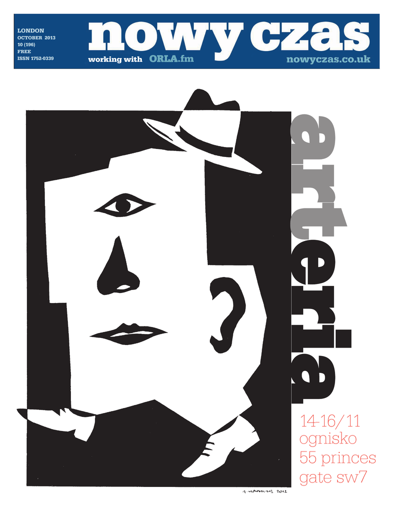 LONDON OCTOBER 2013 10 (196) FREE ISSN 1752-0339 working with ORLA .fm arteria 14-16/11 ognisko 55 princes gate sw7 2| październik 2013 | nowy czas ” [email protected] Trzeba pochwalić 12 £30 £60 Drogi Czytelniku, wesprzyj jeDyne na Wyspach polskie niezależne pismo! Imię i Nazwisko........................................................................................ Adres............................................................................................................ ........................................................................................................................ Kod pocztowy............................................................................................ Tel................................................................................................................. Liczba wydań............................................................................................ Prenumerata od numeru....................................................(włącznie) Prenumeratę Prenumeratę zamówić można na dowolny adres w Wielkiej zamówić można na dowolny adres w UK bądź też w krajach Unii. Brytanii bądź zamówienia też w krajach Uniiwypełnić Europejskiej. Abyformularz dokonać Aby dokonosć należy i odesłać zamówienia należy wypełnić formularz i odesłać go naorder na adres wydawcy wraz z załączonym czekiem lub postal adres wydawcy wraz z czekiem lub postal order. Gazeta wysyłana jest w dniu wydania. Czeki prosimy wystawiać na: CZAS PUBLISHERS LTD. 63 Kings Grove London SE15 2NA 63 King’s Grove, London SE15 2NA Tel.: 0207 639 8507, [email protected], [email protected] REDAKTOR NACZELNY: Grzegorz Małkiewicz ([email protected]); REDAKCJA: Teresa Bazarnik ([email protected]), Jacek Ozaist WSPÓŁPRACA REDAKCYJNA: Joanna Ciechanowska, Krystyna Cywińska, Adam Dąbrowski, Włodzimierz Fenrych, Mikołaj Hęciak, Julia Hoffmann, Tatiana Judycka, Andrzej Krauze, Marta Kazimierczak, Daniel Kowalski, Anna Maria Mickiewicz, Wacław Lewandowski, Bartosz Rutkowski, Sławomir Orwat, Aleksandra Ptasińska, Agnieszka Siedlecka, Wojciech A. Sobczyński, Agnieszka Stando DZIAŁ MARKETINGU: tel./fax: 0207 358 8406, mobile: 0779 158 2949 [email protected] Marcin Rogoziński ([email protected]), WYDAWCA: CZAS Publishers Ltd. © nowyczas Redakcja nie ponosi odpowiedzialności za treść zamieszczanych reklam i ogłoszeń oraz zastrzega sobie prawo niezamieszczenia ogłoszenia. Szanowny Redaktorze, W dniu 18 września mimo niedomagań zdrowotnych postanowiłem wybrać się do Ogniska Polskiego w odpowiedzi na zaproszenie pana Jana Woronieckigo i obecnego Zarządu Klubu. Muszę przyznać, że już w wejściu czuć było mistrza architektury wnętrz. Zniknął różowy kolor ścian i wielka liczba portretów, które powodowały, że Ognisko wyglądało jak karawan cygański z piosenki Maryli Rodowicz „Jadą wozy kolorowe”. Piękna piosenka, ale jak długo można ją śpiewać? Goście powoli zaczęli omijać Ognisko i korzystać z nowoczesnych restauarcji, które powstały w South Kensington. Ówczesny Zarząd zacierał ręce – sprzedamy klub i powołamy fundację. Ale, ale… znalazła się odważna Basia Hamilton. Zwołała zebranie i zaczęła się walka, o której wszyscy już słyszeli!!! Mimo różnych przeciwności losu i polskiego zacietrzewienia, wybrano pułkownika Nicka na prezesa klubu i on to, z wojskowym wigorem i wiedzą manadżerską poprowadził Ognisko ku lepszym czasom. Jan Woroniecki przejął restaurację i pięknie ją unowocześnił wstawiając nowy mebel barowy, szatnia też uzyskala nowy wygląd, a wita gości portret Duka Kentu w lobby Klubu. Przez dwa dni otwarcia było gości co nie miara – statystyki londyńskie mówią o dwóch tysiącach osób!!! Jak będzie dalej, to już czas pokaże. Planowane są spotkania artystyczno-literackie, będą odczyty, wystawy, bale itd. Jestem dobrej myśli i oczekuję od „Nowego Czasu” pięknych artykułów ze zdjęciami z różnych okoliczności . „Nowy Czas” to przecież gazeta czytana w całym polskim świecie. Ognisku jest potrzebna dobra prasa i pochwala dla obecnego Zarządu. Z poważaniem, ORLAND MACHNiKOWSKi kpt.z.w. (ret.) PS. Odnośnie artykułu red. Grzegorza Małkiewicza „Desant w Parku Jordana” w ostantim numerze „Nowego Czasu”. Pani Elżbieta Kasprzycka [która ufundowała popiersie gen. Stanisława Sosabawoskiego w Parku Jordana w Krakowie – red.] była nauczycielką języka polskiego mojego syna Ezry. Wychowała kilka pokoleń młodych Polaków urodzonych tu w Londynie. Nauczyła ich też patriotyzmu. Ezra obecnie mieszka w Moskwie i uczy swoje dzieci języka polskiego. Maya i Teo posługują się trzema językami. Angielskim w American School, językiem rosyjskim z mamą w domu i też w American School, oraz językiem polskim z prywatną nauczycielką i ojcem w domu… Serdecznie tą drogą pozdrawiam Panią Profesor Elżbietę Kasprzycką!!! Orland Machnikowski Dużo ludzi nie wie, co robić z Czasem. Czas nie ma z ludźmi tego kłopotu. Sir, i’ve been to Ognisko a couple of times now and spoken quite a bit with Jan Woroniecki. Loved it both times: śledzik/ blins/ kopytka/ pierogi with chestnuts and wild mushroooms/ chicken in tarragon sauce: all fab! Jan promises to have sztuka mięsa w sosie chrzanowym on the menu soon, along with carafes of jarzębiak (not available yet ... ). MAREK RyMASZEWSKi Lloyd’s of London Szanowna Redakcjo. Ucieszyłem się na widok artykułu z rysunkiem słynnego budynku Lloyd’s, który ukazał się we wrześniowym numerze „Nowego Czasu”. Jest to instytucja, która rzadko pojawia się w polskich mediach i niewiele osób o niej wie, a jest to jedna z najstarszych angielskich firm z tradycją i ciekawą historią. Rynek ubezpieczeniowy, który funkcjonuje pod nazwą Lloyd’s of London zupełnie nie jest związany z bankiem. Dlatego też bardzo ważna jest pisownia: Lloyd’s, a nie: Lloyds. 
