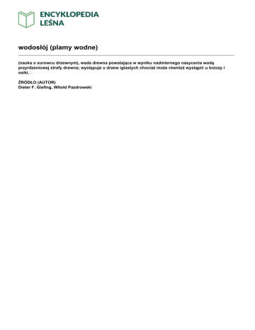 wodosłój (plamy wodne) (nauka o surowcu drzewnym), wada drewna powstająca w wyniku nadmiernego nasycenia wodą przyrdzeniowej strefy drewna; występuje u drzew iglastych chociaż może również wystąpić u brzozy i osiki. ŹRÓDŁO (AUTOR) Dieter F. Giefing, Witold Pazdrowski