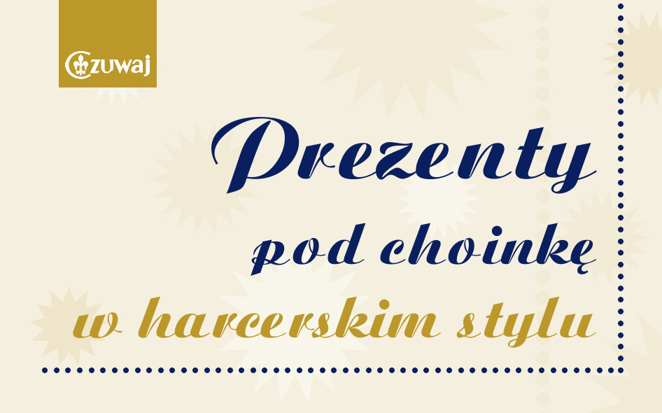 pod choinkê w harcerskim stylu ○ ○ ○ ○ ○ ○ ○ ○ ○ ○ ○ ○ ○ ○ ○ ○ ○ ○ ○ ○ ○ ○ ○ ○ ○ ○ ○ ○ ○ ○ ○ ○ ○○○○○○○○○○○○○○○○○○○○○ Prezenty ○ ○ ○ ○ ○ ○ ○ ○ ○ ○ ○ ○ ○ ○ ○ ○ ○ ○ ○ ○ ○ ○ ○ ○ ○ ○ ○ ○ ○ ○ ○ ○ ○ ○ ○ ○ ○ ○ ○ ○ ○ ○ ○ ○ ○ ○ ○ ○ ○ ○ ○○○○○○○○○○○○○○○○○○○○ Id¹ Œwiêta. I znów szopka, œnieg, choinka, bombki, prezenty, wigilie. No w³aœnie – wigilie, zdecydowanie w liczbie mnogiej! Oprócz naszej rodzinnej wigilii, zazwyczaj uczestniczymy tak¿e w tej w szkole lub pracy oraz w dru¿ynie, szczepie, hufcu… I jak tu wymyœliæ kolejny prezent? Taki fajny, niebanalny, w harcerskim stylu? Pomo¿emy Ci! Przedstawiamy kilkadziesi¹t pomys³ów prezentów dla harcerza lub instruktora. Wa¿ne: wiêkszoœæ zakupów mo¿esz dokonaæ bez wychodzenia z domu – przez internet. Weso³ych Œwi¹t! I oczywiœcie ciekawych prezentów pod choink¹! Pomys³ami podzielili siê: Anna Poraj, Rafa³ Suchocki, Grzegorz Ca³ek. – dziêki nim mo¿e rana siê szybciej nie zagoi, ale z pewnoœci¹ szybciej zniknie smutek z buzi zucha cena: 6,99 z³ za 20 sztuk, IKEA ○○○○○○○○○○○○○○○○○○○○○ ZESTAW KOLOROWYCH PLASTERKÓW Prezenty praktyczne ○ ○ ○ ○ ○ ○ ○ ○ ○ ○ ○ ○ ○ ○ ○ ○ ○ ○ ○ ○ ○ ○ ○ ○ ○ ○ ○ ○ ○ ○ ○ ○ ○ ○ ○ ○ ○ ○ ○○○○○○○○○○○○○○○○○○○○ KAMERTON DMUCHANY – coœ dla amatorów gitary, którym s³oñ nadepn¹³ na ucho cena: 9 z³, www.muzyczny.pl NÓ¯ DO ROZCINANIA LISTÓW oczywiœcie nie tylko do listów harcerskich czy skautowych cena: 4,56 euro, www.worldscoutshop.org DREWNIANY PEN DRIVER pracuj¹c na komputerze ca³y czas czujesz siê jakbyœ by³ w lesie cena: 45–80 euro www.oooms.nl niezwyk³y! – wycina w papierze motyw lilijki cena: 13,50 z³, www.kreateria.pl KSI¥¯KI ŒWI¥TECZNE bardzo praktyczny prezent dla dru¿ynowych, np. „Bo¿onarodzeniowe figurki z doniczek”, „Bo¿onarodzeniowe ozdoby z filcu”, „Bo¿e Narodzenie z anio³kiem” cena: 7–9,50 z³ www.jednosc.com.pl ○○○○○○○○○○○○○○○○○○○○○ DZIURKACZ D£UGOPIS „13 W 1” oprócz piórka kulkowego zawiera m.in. dziurkacz, dwa no¿yki, pêsetê, œrubokrêt, widelec oraz... pa³eczkê do uszu cena: 59 z³, Toys4Boys.pl ○○○○○○○○○○○○○○○○○○○○ Na mi³e wieczory... ○ ○ ○ ○ ○ ○ ○ ○ ○ ○ ○ ○ ○ ○ ○ ○ ○ ○ ○ ○ ○ ○ ○ ○ ○ ○ ○ ○ ○ ○ ○ ○ ○ ○ ○ ○ ○ ○ ○ ○ ○ ○ ○ ○ PRENUMERATA ROCZNA „CZUWAJ” nie mamy w¹tpliwoœci, ¿e lektura naszej gazety umili niejeden wieczór :) cena rocznej prenumeraty: 59–79 z³ (w zale¿noœci od liczby egzemplarzy) www.czuwaj.pl – do poczytania, do przemyœlenia… – polecamy np. „Wêdrówkê do sukcesu” Roberta Baden-Powella cena: 22 z³, www.4zywioly.pl ○○○○○○○○○○○○○○○○○○○○○ DOBRA HARCERSKA KSI¥¯KA P£YTA CD np. z piosenkami turystycznymi lub poezj¹ œpiewan¹ (wedle gustu) cena: ok. 25–35 z³, www.merlin.pl ○○○○○○○○○○○○○○○○○○○○ PACZUSZKA DOBREJ HERBATY której aromat umili instruktorskie spotkania… cena: ok. 6–8 z³ za 50 g www.kawaherbata.eu ŒWIECA ozdobna lub/i pachn¹ca – na harcerskie œwieczkowiska cena: kilka z³, do kupienia gdziekolwiek MIŒ W MUNDURZE – rewelacyjna maskotka dla instruktora, który wci¹¿ jest dzieckiem… cena: 39 z³, www.wgl.pl ○○○○○○○○○○○○○○○○○○○○○ Z harcerskim motywem ○ ○ ○ ○ ○ ○ ○ ○ ○ ○ ○ ○ ○ ○ ○ ○ ○ ○ ○ ○ ○ ○ ○ ○ ○ ○ ○ ○ ○ ○ ○ ○ ○ ○ ○ ○ ○ ○ ○ ○ ○ ○ ○ ○ ○ ○ ○ ○ ○ ○ SATYNOWA POŒCIEL w lilijki – aby œniæ o przysz³oœci dru¿yny… cena: 65 z³, multizakupy.pl SUWAK DO CHUSTY suwak wyj¹tkowy, bo z logo 100-lecia skautingu cena: 6 euro www.worldscoutshop.org ○○○○○○○○○○○○○○○○○○○○ O£ÓWEK £ATWOPALNI kultowy, z nieaktualnym adresem internetowym, wiêc tym bardziej cenna rzecz! cena: 0,99 z³, www.4zywioly.pl HARCKOSZULKI ci¹gle modne, wyraŸ koszulk¹ siebie! cena: 30 z³ www.skalpel.net/harce KOSZULKI FUNKCYJNEGO – czyli zastêpowego, przybocznego, dru¿ynowego, komendanta – niby bez munduru, a wiadomo, kto jest kto cena: 17 z³, www.4zywioly.pl KUBEK Z HARCERSKIM MOTYWEM wybór olbrzymi, na ka¿d¹ okazjê! cena: 7–10 z³, www.4zywioly.pl z napisem „scout inside”, „guide inside” – niby drobiazg, a cieszy! cena: 2 z³, www.skua.pl ○○○○○○○○○○○○○○○○○○○○○ SKAUTOWY BUTON KLAMERKA Z LILIJK¥ nieco kiczowata, ale có¿… to pewnie kwestia gustu cena: 7 z³., www.stylus.pl TKANINA OBICIOWA W LILIJKI CZAJNICZEK GLINIANY oczywiœcie z motywem w lilijki, doskona³y na harcerskie spotkania przy herbacie cena: 55 z³, www.samowar.waw.pl – nawet meblom z XIX wieku mo¿esz nadaæ harcerski charakter! cena: 29,50 z³ za metr www.altex.isu.pl ○○○○○○○○○○○○○○○○○○○○ Prezenty turystyczne ○ ○ ○ ○ ○ ○ ○ ○ ○ ○ ○ ○ ○ ○ ○ ○ ○ ○ ○ ○ ○ ○ ○ ○ ○ ○ ○ ○ ○ ○ ○ CZAPKA I SZALIK komplet z kolekcji ZHP – w sam raz na srog¹ zimê cena: 51–58 z³ www.4zywioly.pl kosmetyki w malutkich opakowaniach – idealna rzecz na rajdy i biwaki cena: kilkanaœcie-kilkadziesi¹t z³ (w zale¿noœci od zawartoœci zestawu i marki), do kupienia w ka¿dym dobrym sklepie z kosmetykami ○○○○○○○○○○○○○○○○○○○○○ KOMPLET MINIKOSMETYKÓW KUBEK TERMICZNY na herbatê lub kawê IMPREGNAT DO BUTÓW – prze