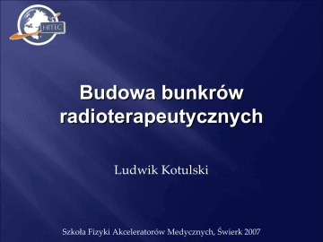 Budowa bunkrów radioterapeutycznych Ludwik Kotulski Szkoła Fizyki Akceleratorów Medycznych, Świerk 2007 Bunkier akceleratora oraz pomieszczenie symulatora jako zabezpieczenie przed promieniowaniem jonizującym Dokumenty określające dopuszczalne wielkości zagrożeń 11/10/2007 Ludwik Kotulski 2 Ustawa z dn. 29 listopada 2000r. – Prawo Atomowe. • W zależności od wielkości zagrożenia wprowadza dwie kategorie pracowników: • kategoria „A” – narażeni na dawkę skuteczną przekraczającą 6 mSv/rok • kategoria „B” – narażeni na dawkę skuteczną przekraczającą 1 mSv/rok 11/10/2007 Ludwik Kotulski 3 Rozporządzenie Rady Ministrów z dn. 18 stycznia 2005r. w sprawie dawek granicznych promieniowania jonizującego. • Ustala wielkości dawek granicznych: • dla pracowników pracujących w warunkach narażenia dawka graniczna jako dawka skuteczna wynosi - 20 mSv/rok • dla osób z ogółu ludności dawka graniczna jako dawka skuteczna wynosi - 1 mSv/rok 11/10/2007 Ludwik Kotulski 4 Rozporządzenie Rady Ministrów z dn. 12 lipca 2006r. w sprawie szczegółowych warunków bezpiecznej pracy ze źródłami promieniowania jonizującego. • Ustala maksymalny poziom dawek skutecznych dla ogółu ludności: • 0,1 mSv/rok dla pracowni zlokalizowanych w budynku mieszkalnym albo w budynku zamieszkania zbiorowego • 0,3 mSv/rok w przypadku pozostałych pracowni Przepisy te nie dotyczą aparatów rentgenowskich. 11/10/2007 Ludwik Kotulski 5 Rozporządzenie Ministra Zdrowia z dn. 21 sierpnia 2006r. w sprawie szczegółowych warunków pracy z urządzeniami radiologicznymi. • Określa limity dawek dla pracowni, gabinetów rentgenowskich: • 6 mSv/rok w gabinecie rentgenowskim • 3 mSv/rok w pomieszczeniach pracowni rentgenowskiej poza gabinetem rentgenowskim • 0,5 mSv/rok w pomieszczeniach poza pracownią rentgenowską, a także osoby z ogółu ludności przebywające w sąsiedztwie. 11/10/2007 Ludwik Kotulski 6 Bunkry nowo projektowane 3. Wielkość i kształt bunkra – usytuowanie urządzeń • Minimalne wymiary bunkra limitowane są swobodnym obrotem stołu terapeutycznego. • Kierunki padania wiązki oraz charakter pomieszczeń znajdujących się na zewnątrz bunkra określają grubości i materiały ścian osłonowych. • Zależność na osłabienie promieniowania jonizującego I = e− µ r I0 • Kształt i rozmiary labiryntu. 11/10/2007 Ludwik Kotulski 7 Przykładowe rozwiązanie bunkra wersja I 11/10/2007 Ludwik Kotulski 8 Przykładowe rozwiązanie bunkra wersja II 11/10/2007 Ludwik Kotulski 9 Przykładowe rozwiązanie bunkra wersja III 11/10/2007 Ludwik Kotulski 10 Przykładowe rozwiązanie labiryntu wersja I 11/10/2007 Ludwik Kotulski 11 Przykładowe rozwiązanie labiryntu wersja II 11/10/2007 Ludwik Kotulski 12 Przykładowe rozwiązanie labiryntu wersja III 11/10/2007 Ludwik Kotulski 13 1. Materiały stosowane jako osłony w budowie bunkrów • beton zwykły żwirowy, bazaltowy – ρ = 2.0÷2,6 g/cm3 • beton barytowy – ρ = 3,1÷3,4 g/cm3 • beton magnetytowy – ρ = 3,2÷4,0 g/cm3 • ołów • żelazo • parafina • polietylen 11/10/2007 Ludwik Kotulski 14 1. Materiały stosowane jako osłony w budowie pomieszczeń symulatorów • beton zwykły • cegła pełna – ρ = 1,6 g/cm3 • tynk barytowy • ołów • szkło ołowiane • panele ołowiane 11/10/2007 Ludwik Kotulski 15 Bunkry adaptowane po bombach kobaltowych, starszych akceleratorach • energia • moc dawki • położenie izocentrum • dawki graniczne, limity użytkowe dawek 11/10/2007 Ludwik Kotulski 16 Materiały stosowane jako osłony w adaptowanych bunkrach • beton zwykły żwirowy, bazaltowy – ρ = 2.0÷2,5 g/cm3 • ołów • żelazo • polietylen 11/10/2007 Ludwik Kotulski 17 Wymiana akceleratora Neptun 10P na akcelerator Clinac 2300 C/D Silhouette Zmiana limitu dawek, energii, mocy dawki, położenia izocentrum 11/10/2007 Ludwik Kotulski 18 Wymiana bomby kobaltowej na akcelerator Clinac 600 C/D Zmiana limitu dawek, energii, mocy dawki, położenia izocentrum 11/10/2007 Ludwik Kotulski 19 Wymagania techniczne • przepusty instalacyjne • wentylacja • oświetlenie • systemy sygnalizacyjno – ostrzegawcze • komunikacja wzrokowa • komunikacja słuchowa 11/10/2007 Ludwik Kotulski 20 Podstawowy wzór do obliczania grubości osłon przed promieniowaniem jonizującym WA × T × U × t0 × q × Ki Si = zi × log D 11/10/2007 Ludwik Kotulski 21 Punkty obliczeniowe 11/10/2007 Ludwik Kotulski 22 Przykład obliczeń Pkt. P1 Na zewnątrz - promieniowanie pierwotne. ściana „O1” z betonu zwykłego o gęstości ρ = 2,3 g/cm3 Dane do obliczeń: • Zr = 32,4 cm wg rys. 1, Norma DIN 6847 cz.2 dla betonu zwykłego ρ = 2,3 g/cm3 • WA = 360000 mGy/h • T = 0,05 • U = 0,25 • t0 = 1,5 x 5,5 = 8,25 h/tydz. zwiększony czas pracy z promieniowaniem, z uwagi na pracę dwuzmianową akceleratora • q=1 11/10/2007 Ludwik Kotulski 23 A02 KR = 2 An • A0 = 1 m • An = 5,4 m • D = 0,006 mSv/tydz. 36000 × 0,05 × 0,25 × 8,25 × 1 × S = 32,4 × lg 0,006 1 5,42 = 173 cm • Grubość istniejącej ściany „O1” wynosi: sO1= 146 cm betonu zwykłego o gęstości ρ = 2,3 g/cm3. • Brakuje około 27 cm betonu zwykłego lub 8 cm Fe. 11/10/2007 Ludwik Kotulski 24 Przykład sposobu obliczania drzwi 11/10/2007 Ludwik Kotulski 25 11/10/2007 Ludwik Kotulski 26 Koniec 11/10/2007 Ludwik Kotulski 27