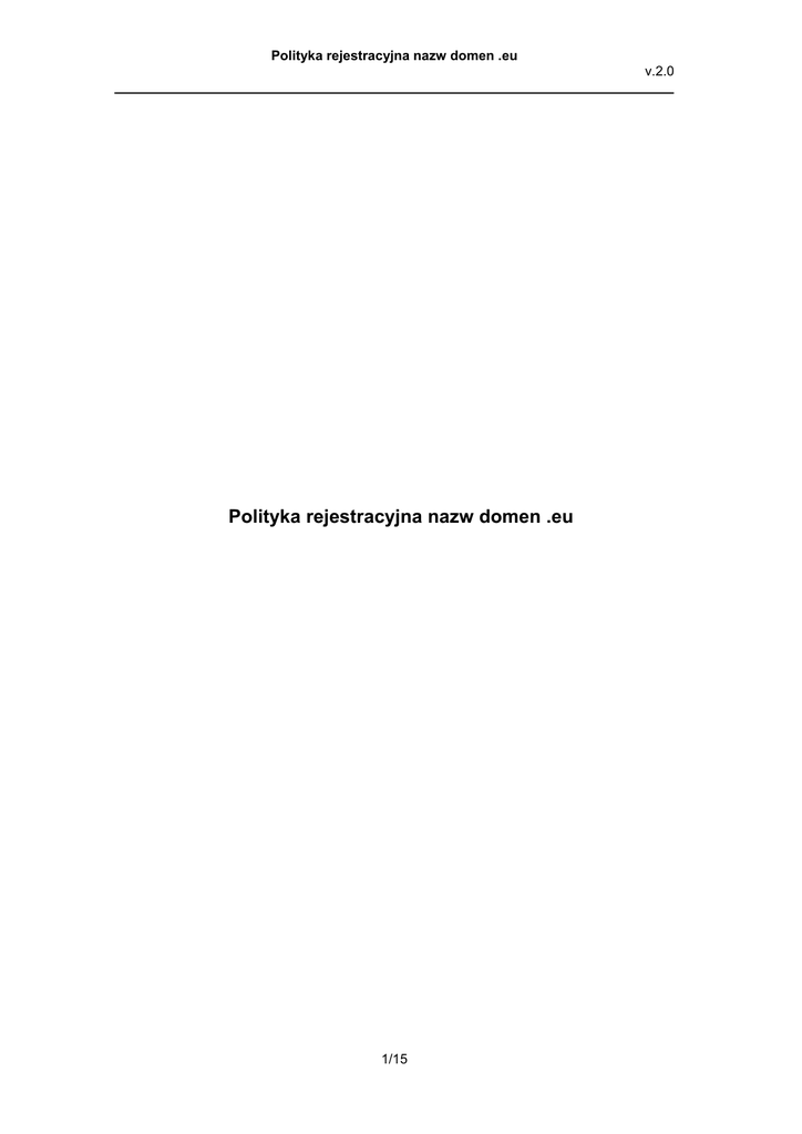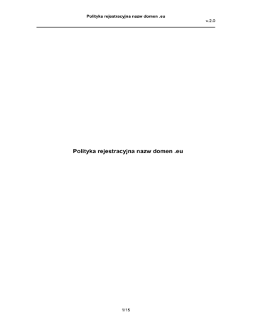 Polityka rejestracyjna nazw domen .eu v.2.0 Polityka rejestracyjna nazw domen .eu 1/15 Polityka rejestracyjna nazw domen .eu v.2.0 SPIS TRE CI Spis tre ci ............................................................................................................. 2 Definicje ............................................................................................................... 3 Cel i zakres........................................................................................................... 3 Cz! " 1. Ustalenie, czy Rejestruj#cy spe$nia Ogólne Kryteria Kwalifikacyjne ... 3 Cz! " 2. Wybór nazwy – Wymagania techniczne i zwi#zane z dost!pno ci#... 4 Cz! " 3. Wybór Rejestratora............................................................................. 4 Cz! " 4. Zapoznanie si! z Zasadami ................................................................ 4 Cz! " 5. Podanie dok$adnych i pe$nych danych kontaktowych ......................... 5 Cz! " 6. Rejestracja Nazwy Domeny ............................................................... 6 Cz! " 7. Baza danych WHOIS.......................................................................... 6 Cz! " 8. Procedura zmiany danych kontaktowych ........................................... 8 Cz! " 9. Procedura odnawiania lub anulowania Nazwy Domeny ..................... 8 Cz! " 10. Procedura zmiany Rejestratora....................................................... 9 Cz! " 11. Zawieszenie Nazw Domen i procedura reaktywacji ...................... 10 Cz! " 12. Procedura Wycofania Nazwy Domeny .......................................... 11 Cz! " 13. Procedura przenoszenia Nazw Domen ......................................... 12 ZA%&CZNIK 1..................................................................................................... 14 2/15 Polityka rejestracyjna nazw domen .eu v.2.0 DEFINICJE Terminy zdefiniowane w Warunkach i/lub Zasadach rozstrzygania sporów dotycz#cych domeny .eu s# w niniejszym dokumencie pisane wielk# liter#. CEL I ZAKRES Niniejsza Polityka rejestracyjna okre la procedury techniczne i administracyjne stosowane przez Rejestr w zwi#zku z rejestracj# Nazw Domen lub wnioskami o tak# rejestracj!, $#cznie z anulowaniem, przeniesieniem, zawieszeniem, wycofaniem itp. tych Nazw Domen. Warunki niniejszej Polityki rejestracyjnej dotycz# wy$#cznie rejestracji lub wniosków o rejestracj! Nazw Domen, o których mowa w art. 2 ust. 4 Regu$ porz#dku publicznego, tj. Nazw Domen zarejestrowanych bezpo rednio w Domenie Najwy'szego Poziomu (TLD) „.eu”. Niniejsza Polityka rejestracyjna nie ma zastosowania do nazw zarejestrowanych w domenach ni'szych poziomów, które s# zarz#dzane wy$#cznie przez Rejestruj#cego i nie podlegaj# w$adzy Rejestru. CZ! " 1. USTALENIE, CZY REJESTRUJ#CY SPE$NIA OGÓLNE KRYTERIA KWALIFIKACYJNE W pierwszym etapie rejestracji Rejestruj#cy musi ustali", czy spe$nia Ogólne Kryteria Kwalifikacyjne, czyli czy jest: (i) przedsi!biorc# maj#cym statutow# siedzib!, zarz#d lub g$ówne miejsce prowadzenia dzia$alno ci we Wspólnocie lub (ii) organizacj# za$o'on# na terytorium Wspólnoty, bez uszczerbku dla stosowania przepisów prawa krajowego, lub (iii) osob# fizyczn# zamieszka$# we Wspólnocie. Pa(stwa i terytoria, które wchodz# w sk$ad Wspólnoty, wymieniono w za$#czniku 1. W przypadku odpowiedzi negatywnej: je'eli Rejestruj#cy nie spe$nia jednego z powy'szych warunków, nie ma niestety prawa do rejestracji Nazwy Domeny w TLD .eu. Je'eli Rejestruj#cy z$o'y wniosek o rejestracj! Nazwy Domeny lub je li ma mo'liwo " rejestracji Nazwy Domeny bez konieczno ci spe$nienia powy'szych warunków, Rejestr ma prawo w ka'dej chwili odrzuci" wniosek o rejestracj! Nazwy Domeny lub wycofa" dan# Nazw! Domeny, zale'nie od tego, co uzna za stosowne (cz! " 6 ust. 4 i 9 ust. 4 Warunków). 3/15 Polityka rejestracyjna nazw domen .eu v.2.0 W przypadku odpowiedzi pozytywnej: Je'eli Rejestruj#cy spe$nia jeden z powy'szych warunków, mo'e przej " do cz! ci 2. " 2. WYBÓR NAZWY DOST!PNO CI# CZ! – WYMAGANIA TECHNICZNE I ZWI#ZANE Z Przed wype$nieniem wniosku o rejestracj! Nazwy Domeny Rejestruj#cy ma obowi#zek sprawdzi", czy Nazwa Domeny, o której przyznanie wnosi, spe$nia wymagania techniczne i zwi#zane z dost!pno ci#, okre lone w cz! ci 2 ust. 2 Warunków. W tym celu Rejestruj#cy musi podj#" nast!puj#ce kroki: (i) sprawdzi", czy Nazwa Domeny spe$nia wymagania techniczne okre lone w cz! ci 2 ust. 2 pkt (ii) Warunków; (ii) sprawdzi" w Bazie danych WHOIS .eu (dost!pnej na stronie internetowej Rejestru), czy Nazwa Domeny jest dost!pna; nazwy domen wymienione w wykazach nazw zablokowanych lub zawieszonych (publikowanych na stronie internetowej Rejestru) s# (jeszcze) niedost!pne do rejestracji; oraz (iii) sprawdzi" w Bazie danych Sunrise WHOIS .eu (dost!pnej na stronie internetowej Rejestru), czy w Okresie Rejestracji Stopniowej z$o'ono wniosek o przyznanie Nazwy Domeny; zgodnie z Zasadami Sunrise, domeny takie nie s# ogólnie dost!pne do czasu wydania przez Rejestr decyzji o ich udost!pnieniu. CZ! " 3. WYBÓR REJESTRATORA Nazwy Domen mo'na rejestrowa" (lub przed$u'a" istniej#c# rejestracj!) w Rejestrze wy$#cznie za po rednictwem Rejestratora, który dzia$a w imieniu Rejestruj#cego. W celu z$o'enia wniosku o rejestracj! Nazwy Domeny Rejestruj#cy powinien zatem wybra" z listy zamieszczonej na stronie internetowej Rejestru Rejestratora akredytowanego przez Rejestr. CZ! " 4. ZAPOZNANIE SI! Z ZASADAMI Wype$niaj#c wniosek o rejestracj! Nazwy Domeny, Rejestruj#cy zawiera z Rejestrem umow!, której warunki s# okre lone w Zasadach. Od tej chwili Rejestruj#cego obowi#zuj# wy$#cznie te Zasady, których tre " mo'e ulega" zmianie zgodnie z procedurami okre lonymi w niniejszym dokumencie. 4/15 Polityka rejestracyjna nazw domen .eu v.2.0 Rejestrator ma obowi#zek poinformowania Rejestruj#cego o stosowanych Zasadach przed wype$nieniem wniosku o rejestracj! Nazwy Domeny. Warunki oraz wszystkie inne aktualnie obowi#zuj#ce Zasady dost!pne s# na stronie inte