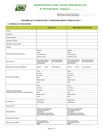 Kwestionariusz poręczyciela - Międzypowiatowy Bank Spółdzielczy