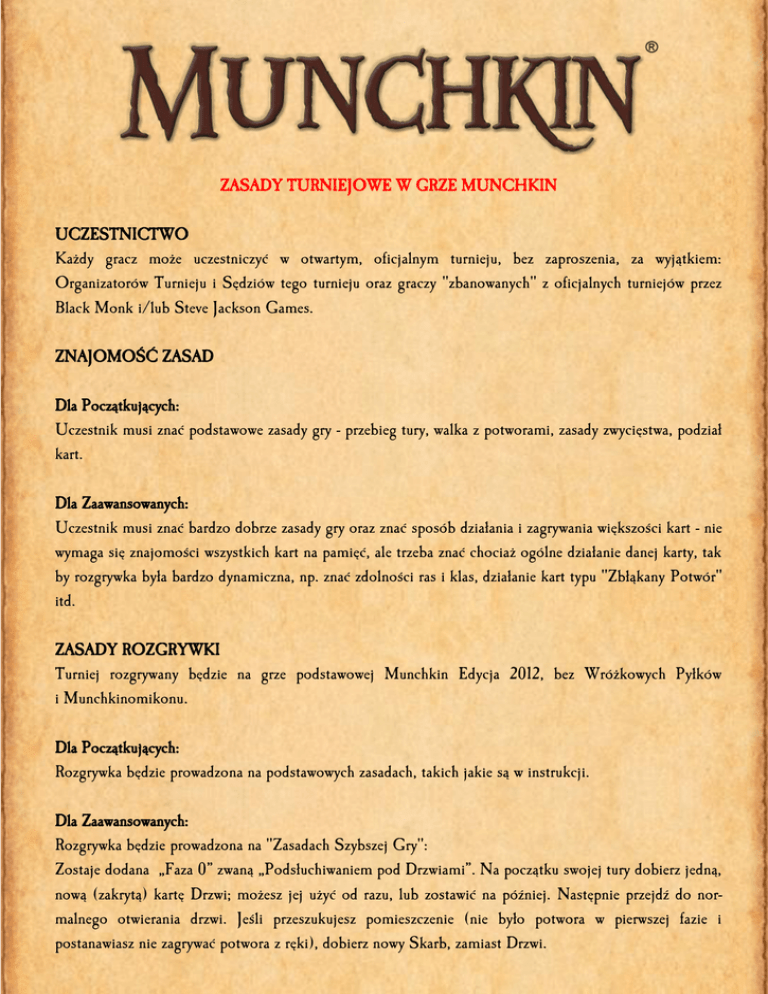ZASADY TURNIEJOWE W GRZE MUNCHKIN UCZESTNICTWO