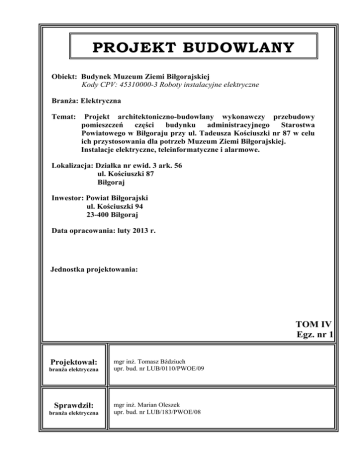 Opis instalacje elektryczne Muzeum Ziemi