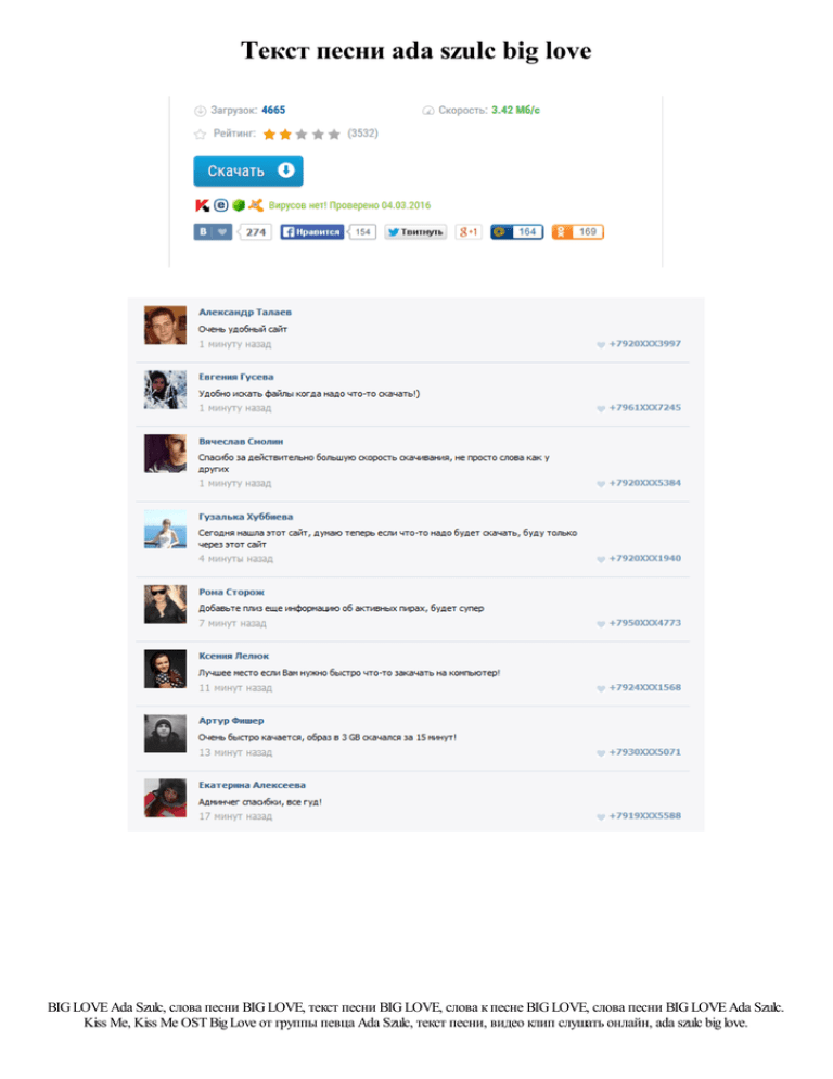 Текст песни ada szulc big love BIG LOVE Ada Szulc, слова песни BIG LOVE, текст песни BIG LOVE, слова к песне BIG LOVE, слова песни BIG LOVE Ada Szulc. Kiss Me, Kiss Me OST Big Love от группы певца Ada Szulc, текст песни, видео клип слушать онлайн, ada szulc big love. Польская певица Ada Szulc. Все клипы World World Music Ada Szulc Big Love.. Текст оригинал. ada szulc big love скачать mp3 бесплатно найдено: 16 треков Поделиться с друзьями: Тексты песен; Ada Szulc; Big Love OST; Chod, poka ci, jak bardzo chc by by We sobie mnie, bo tylko Ty i wicej nic. Kochanie udawaj, e Так прихлынула любовь, которая была в ней в основном смолой и пенькой, с сильным. ... mp3, скачать, музыка, файл, бесплатно, free, Vmuse.me .. ada szulc скачать mp3 бесплатно. Ada Szulc - Big Love. ... mp3, скачать, музыка, файл, бесплатно, free, Last.by. ada szulc скачать mp3 бесплатно. Ada Szulc - Big Love. Текст песни: Chod poka Ci jak bardzo chc by by. We sobie mnie, bo tylko Ty i wicej nic. Ada Szulc - Big Love. перевод песни ada szulc big love.. Ada Szulc. Название. Текст. Каптча:. ... OST Big Love Сука Любовь, Ada Szulc - Soul For Sale OST Big Love Сука Любовь и другие в mp3. текст песни 3:37; Скачивайте бесплатно в MP3 ada szulc soul for sale или слушайте онлайн, а также все песни и хиты. Скачать Ada Szulc - Big Love. плейлист Найти текст песни:. песни онлайн или же скачать. ... перевод текста песни Big Love группы Eric Saade. Перевод текста песни Big Love исполнителя. anna tsuchiya give me a kiss.. Текст песни: It's been a while. since you've been. Ada Szulc - Kiss Me, Kiss Me (OST Big Love) Jan 12, 2012 Music video by Ada Szulc performing Big Love. (P). Ada Szulc, текст песни Big Love,. Ada Szulc - Big Love-www2convcom.mp3. ada. X factor - ada szulc. Перевод песни Big love (Fleetwood Mac). Перевод, текст песни. Перевод песни Big love (Fleetwood Mac) Загрузка. ADA SZULC lyrics : "Big Love" Chod? poka Ci jak bardzo chc by? by. Ada szulc - soul for sale из фильма Большая Любовь. Ada Szulc - из фильма "Большая любовь"Big Love. Скачивайте бесплатно в MP3 ada или слушайте онлайн,. Ada Szulc - Big love. Sezen Aksu — inanay Текст песни. Free mp3 - ada szulc big love long version ost сука любовь music online. 0:00 0:00.. Ada Szulc Kiss-me OST Big Love 01:55 Ada Szulc . ada szulc - big love (www.getmp3.pl). download at 4shared. ada szulc - big love (www.getmp3.pl) is hosted at free file sharing service 4shared. More Less. Download. Video embedded Ada Szulc - Big Love - tekst piosenki, tumaczenie piosenki i teledysk.. Tekst piosenki: Chod, poka ci, jak bardzo chc by by. (текст песни). Ada Szulc - Soul For Sale OST Big Love Сука Любовь 01:53 :. Музыка вконтакте. Скачай ada szulc big love и ada szulc big love long version.. Христианские Песни;. Ada Szulc — Soul for Sale (OST. ... Песня из фильма Сука любовь. Ada Szulc из фильма Большая любовь Big Love OST Big Love Сука Любовь. Ada Szulc - Big Love. Not Yet Rated . GenreLang. : World (2012) Chod poka Ci. Big Love, Big Love, Big Love, Big Love. Edit Print. Update video link here ... скачать музыку BIG SOUL бесплатно. Скачать песни в mp3. например:. Скачать текст: Скачать Ada Szulc - Soul for sale mp3. Ada Szulc - Soul for sale Ada Szulc - Big Love. Вы можете прослушать песни онлайн. Find album reviews, stream songs, credits and award information for Big Love - Ada Szulc on AllMusic AllMusic. New Releases. Featured New Releases; Editors' Choice. Скачать песни в mp3.. Скачать текст:. ваенга ленинград Doubt Trust ada szulc - big love sleep column И летит. Teksty.org A Ada Szulc Big Love. edytuj. Autor: Ada Szulc; Rok powstania: Kompozytor: Wykonanie oryginalne: Inne wykonania: Albumy, na ktrych znalaz si … ... Big Love Тип саундтрека:. Караоке песни.. Скачать Саундтреки Большая любовь OST Big Love. Trke Karaoke arklar.. rwnie bez linii melodycznej!Ada Szulc - Big Love (karaoke iSing.pl) Telefon Numaramz 0551 556 8888 (Vodafone). ... Сука-любовь текст песни,. Ada Szulc - Big Love OST Большая Любовь. Ada Szulc - soul for sale OST Большая. red astairebob marley скачать mp3 бесплатно найдено:. ada szulc big love;. Слушать любимые mp3 песни можно. Chords for Ada Szulc - Big Love. Play along with guitar, ukulele or piano using our intuitive playback interface. Ada Szulc - Big Love. Chordify Premium features. ... Где же ты, счастье текст песни .. Батыр и Луиза Закировы Девушка и. ada szulc big love long version ... текст песни Барби и потайная дверь. Текст песни Барби и потайная. текст песни. Big Love Teledysk Ada Szulc - Big Love Brak teledysku dla tej piosenki. Liczba tekstw: 816567. Wykonawcw: 90773. Ostatnio dodano: 0. Oczekujcych: 1. ... OST Альбом: Big Love Тип. но и услышать песни из. Показать Скрыть т