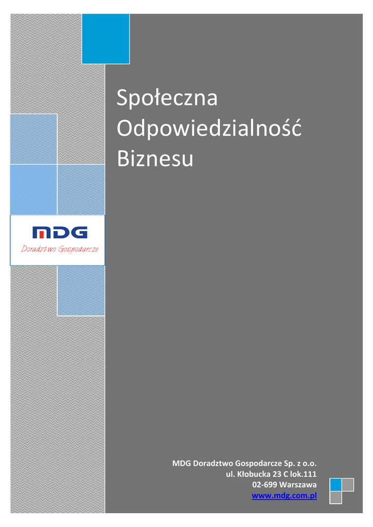 Społeczna Odpowiedzialność Biznesu MDG Doradztwo Gospodarcze Sp. z o.o. ul. Kłobucka 23 C lok.111 02-699 Warszawa www.mdg.com.pl „Jesteśmy odpowiedzialni za wywierany przez siebie wpływ, niezależnie czy jest on zamierzony, czy nie. To zasada numer jeden. Niewątpliwie odpowiedzialność spada na tych, którzy kierują przedsiębiorstwem.(...) A ci, którzy biorą odpowiedzialność za oddziaływanie, mogą je minimalizować” (Drucker, Management) „Nie można, jak Milton Friedman, twierdzić (...), że na biznesie ciąży tylko odpowiedzialność za wyniki ekonomiczne. Odpowiedzialność ekonomiczna to podstawowy obowiązek biznesu. (...) Wyniki ekonomiczne stanowią podstawę, bez której nie można brać na siebie odpowiedzialności za cokolwiek, innego (...). Ale odpowiedzialność za wyniki ekonomiczne to w żadnym razie nie wszystko” (Drucker) „Społeczna odpowiedzialność zaczyna się tam, gdzie kończy się zasięg oddziaływania prawa” (Davis) Strona 2 z 28 SPIS TREŚCI WSTĘP ................................................................................................... 4 1 Geneza i główne przyczyny rozwoju CSR ....................................... 5 2 Znaczenie społecznej odpowiedzialność biznesu .......................... 7 3 Korzyści prowadzenia odpowiedzialnego społecznie biznesu. .. 10 4 Odpowiedzialny biznes w praktyce................................................ 14 5 Zewnętrzny i wewnętrzny wymiar CSR ........................................... 19 6 Argumenty zwolenników i przeciwników CSR ............................... 21 8. Wymagania międzynarodowej normy ISO 26000 .......................... 22 PODSUMOWANIE................................................................................ 27 Literatura: ............................................................................................ 28 Strona 3 z 28 WSTĘP Zagadnienia społecznej odpowiedzialności biznesu stały się istotnym i coraz częściej poruszanym tematem debat publicznych oraz politycznych. Państwa członkowskie Unii Europejskiej prezentują różne poziomy świadomości oraz praktycznego stosowania koncepcji Corporate Social Resposobility - CSR w biznesie. W Polsce temat ten pojawił się w publicznych dyskusjach około 2000 roku. Podjęcie tematu ma swoje uzasadnienie w związku z coraz większym zainteresowaniem społeczną odpowiedzialnością biznesu, jak i niedostatecznym poziomem wiedzy w tymże zakresie, w szczególności wśród ogółu społeczeństwa. Poniższe opracowanie ma na celu zaprezentowanie i usystematyzowanie wiedzy z zakresu społecznej odpowiedzialności biznesu. OCHRONA ŚRODOWISKA NATURALNEGO GLOBALIZACJA NIERÓWNOŚĆ UBUSTWO Corporate ROZWÓJ SPOŁECZEŃSTWA OBYWATELSKIEGO Social Resposobility ROZWÓJ I NAUKA O ZARZĄDZANIU PRZEDSIĘBIORSTWAMI ZRÓWNOWAŻAONY ROZWÓJ STANDARDY ZARZĄDZANIA [Rys. 1] Przesłanki powstania idei CSR. Strona 4 z 28 1 Geneza i główne przyczyny rozwoju CSR Tematyka Społecznej Odpowiedzialności Biznesu w ostatnich latach stała się bardzo modna. Jednak po bliższym przyjrzeniu się kwestiom składającym się na CSR okaże się, że nie są one wcale takie nowe. Etyka kupiecka czy dobre praktyki rzemieślnicze istniały przecież od zawsze. Okres rewolucji przemysłowej przyniósł z kolei rozwój własnych, nowatorskich jak na tamte czasy programów społecznych (powstanie szpitali, obiektów użyteczności publicznej, mieszkań dla robotników, wypłacanie zapomogi w wypadkach losowych, zwrócenie większej uwagi na tematykę bezpieczeństwa i higieny pracy). Lata 80-te XX wieku to okres rosnącego zainteresowania zrównoważonym rozwojem, kiedy to zaczęły powstawać wielkie koncerny przemysłowe. Dostrzeżono wówczas, iż duże korporacje posiadające zasoby kapitałowe oraz pozycję rynkową, ponoszą dużą odpowiedzialność. Koncepcja społecznej odpowiedzialności przedsiębiorstw narodziła się wraz ze zmianami gospodarczymi na początku XIX w., kiedy to zaczęły powstawać wielkie koncerny przemysłowe. Wówczas stwierdzono, iż duże korporacje, ze względu na swoją pozycję na odpowiedzialność, rynku stąd i posiadane wymagania im zasoby kapitałowe, stawiane w ponoszą zakresie dużą społecznej odpowiedzialności powinny być również wysokie. Wywołało to szereg dyskusji na ten temat i przyczyniło się do wzrostu zainteresowania społeczną odpowiedzialnością przedsiębiorstwa6. Podejście do CSR (Corporate Social Resposobility) zmieniało się na przestrzeni lat, ze względu na różne uwarunkowania zewnętrzne, które determinowały rozwój tej koncepcji. Współcześnie do podjęcia działań w zakresie CSR jednostki gospodarcze zostały zmuszone przez silne naciski ze strony otoczenia, wynikające między innymi ze wzrastającej konkurencji, czy zmiany wartości, zarówno wśród klientów (zachowania projakościowe i i samorealizacji, zdynamizowanego proekologiczne), wzrost jak wartości zainteresowania i pracowników czasu koncepcją (dążenie wolnego). społecznej Wśród do rozwoju przesłanek odpowiedzialności biznesu, należy wymienić przede wszystkim: Zmieniające się otoczenie zewnętrze organizacji, Wzrost aktywności społeczeństwa obywatelskiego w skali globalnej, zmiana charakteru konsumenta, który z odbiorcy biernego staje się w odbiorcą krytycznym, zaangażowanym w proces produkcji, Strona 5 z 28 Wzrost znaczenia niematerialnych zasobów firmy, poszukiwanie nowych sposobów konkurowania, opartych na zaufaniu, Zmiana podejścia inwestorów, którym coraz częściej wyniki finansowe już nie wystarczają. Do powyższych zmian przyczynił się łatwy dostęp do informacji, dający możliwość podniesienia wiedzy u konsumentów, zarówno na temat jakości produktu, jak również na temat funkcjonowania przedsiębiorstw. Zobligowało to przedsiębiorców do otwartej komunikacji i większej przejrzystości działań. Strona 6 z 28 2 Znaczenie społecznej