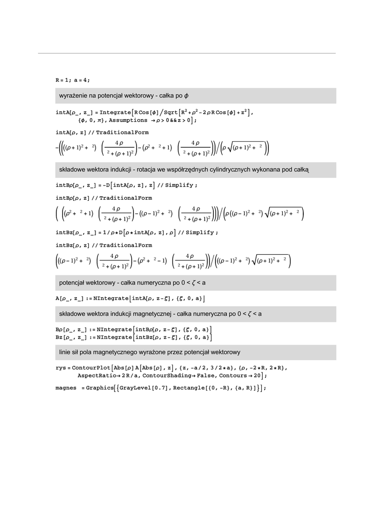 potencjał wektorowy - całka numeryczna po 0 < ζ < a