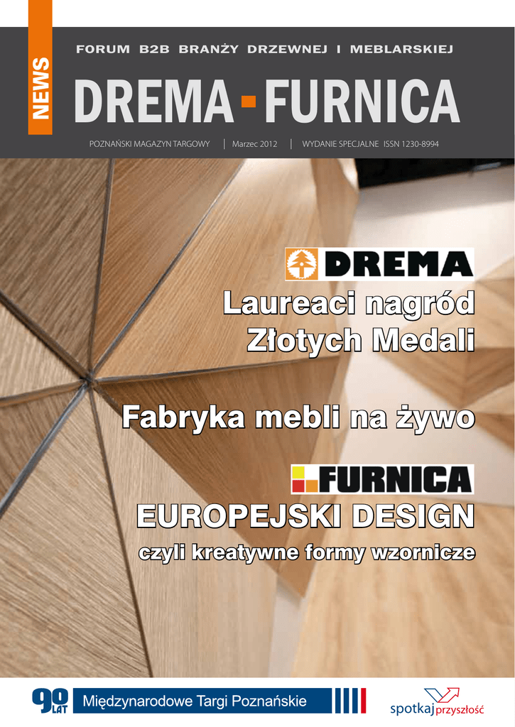 NEWS FORUM B2B BRANŻY DRZEWNEJ I MEBLARSKIEJ DREMA FURNICA POZNAŃSKI MAGAZYN TARGOWY Marzec 2012 WYDANIE SPECJALNE ISSN 1230-8994 Laureaci nagród Złotych Medali Fabryka mebli na żywo EUROPEJSKI DESIGN czyli kreatywne formy wzornicze spotkaj przyszłość www.drema.pl • www.furnica.pl • www.drema.pl • www.furnica.pl W NUMERZE DREMA • FURNICA 4 Laureaci nagród Złotych Medali Hanna Ochnik – Pawłowska Dyrektor Targów FURNICA Andrzej Półrolniczak Dyrektor Targów DREMA Szanowni Państwo Szansa na nowe umiejętnosci 8 6 Fabryka mebli na żywo 10 Mapka DREMA FURNICA 2012 – program wydarzeń 12 Międzynarodowa Konferencja Naukowo-Techniczna 14 Stowarzyszenie DROMA – tradycja i nowoczesność 15 EUROPEJSKI DESIGN czyli kreatywne formy wzornicze 18 16 DREMA – nowości 2012 FURNICA – nowości 2012 26 23 Wielkopolskie smaki NEWS FORUM B2B BRANŻY DRZEWNEJ I MEBLARSKIEJ DREMA FURNICA POZNAŃSKI MAGAZYN TARGOWY Marzec 2012 Redaktor wydania: Magdalena Jastrzębska Zdjecia: Archiwum MPT Projekt graficzny: PressEnter Skład: INPlus/Bartosz Wojciechowski Reklama: Małgorzata Barczak, tel. 61 869 25 24, e-mail: mał[email protected] WYDANIE SPECJALNE ISSN 1230-8994 Wydawca: Międzynarodowe Targi Poznańskie sp. z o.o. Głogowska 14, 60-734 Poznań, Polska tel. 61 869 20 00, fax 61 869 29 99 e-mail:[email protected] www.mtp.pl Serdecznie zapraszamy do lektury magazynu DREMA FURNICA NEWS, który w całości dedykujemy branży drzewnej i meblarskiej. Na łamach szczegółowo opisujemy wydarzenia i program, który przygotowaliśmy w tym roku specjalnie na Międzynarodowe Targi Maszyn i Narzędzi dla Przemysłu Drzewnego i Meblarskiego DREMA oraz Międzynarodowe Targi Komponentów do Produkcji Mebli FURNICA. Wizyta w Poznaniu oznacza możliwość zapoznania się z najnowszą ofertą producentów i dostawców techniki i technologii dedykowanej różnej wielkości firmom zajmującym się obróbką drewna i produkcji mebli. W jednym miejscu, przez cztery dni targowe odwiedzający targi profesjonaliści nie tylko spotkają czołowych dostawców dysponujących szeroką ofertą znanych i cieszących się światową renomą marek. Wiele z tych rozwiązań to zupełne nowości, które mają swoją premierę właśnie w Poznaniu. Niektóre z nich zostały zgłoszone do konkursu o Złoty Medal Międzynarodowych Targów Poznańskich. Nowa formuła wspomnianej konkurencji polega m.in. na tym, że już na kilkanaście tygodni przed terminem odbywania się targów poznamy zwycięzców. Jedną z ciekawostek jest możliwość oddawania głosów przez konsumentów, za pośrednictwem Internetu na stronie www.zlotymedal.mtp.pl oraz na miejscu, w Strefach Mistrza, za pośrednictwem ekranów dotykowych Wpisana w kalendarz profesjonalistów wizyta na targach Drema i Furnica, jest nie tylko okazją do zapoznania się z oferta firm ze światowego panteonu, ale również okazją do zapoznania się z najnowszymi trendami w branży. Dlatego wspólnie z naszymi partnerami staramy się przygotować dla Państwa inspirujące przestrzenie pokazowe i wydarzenia. W tym roku szczególnej uwadze polecamy Międzynarodową Konferencję Naukowo-Techniczną „Hybrydowe technologie modyfikacji powierzchni narzędzi do obróbki drewna” (28 marca 2012 godz. 11.00). Jej organizatorami są Instytut Mechatroniki, Nanotechnologii i Techniki Próżniowej Politechniki Koszalińskiej oraz Międzynarodowe Targi Poznańskie. Konferencja będzie forum wymiany informacji i prezentacji nowych rozwiązań i technologii w zakresie modyfikowanych powierzchniowo narzędzi do obróbki drewna, oferowanych przez instytucje badawcze i producentów działających w przemyśle narzędzi do obróbki drewna. Podczas targów FURNICA odbędzie się wystawa specjalna poświęcona designowi mebli największych eksporterów mebli na rynek zachodni. Wystawa „Europejski design” zaprezentuje projekty mebli, które powstały z myślą o niemieckim odbiorcy, ale też i te które projektant stworzył dla Europejczyka i równie dobrze sprzedają się w kilku krajach. Do współpracy przy tworzeniu wystawy zaproszone zostały wiodące fabryki mebli z Polski eksportujące do Niemiec. Wystawie będą towarzyszyły warsztaty poświęcone tematyce designu. Zapraszamy, jak zawsze serdecznie, na nasze znane i cieszące się wielka popularnością wydarzenia: Mistrzostwa Polski we Wbijaniu Gwoździ, konkurs Wyczarowane z Drewna, czy też Poligon Umiejętności. Warto również odwiedzić tegoroczną Fabrykę Mebli na Żywo, gdzie produkowane będą szafki kuchenne, ukazując niuanse produkcji mebli skrzyniowych Podczas tegorocznych targów Drema, będziemy również świętować jubileusz Stowarzyszenia DROMA, które w tym roku obchodzi 20-lecie swojego istnienia. Jubileusz ten jest okazją do rewitalizacji marki Stowarzyszenia, co wiąże się z wprowadzeniem nowej identyfikacji graficznej (logo), a także z uruchomieniem nowej strony internetowej organizacji. Jak mówią władze tej organizacji – zmieniła się także jej strategia, która teraz przewiduje otwarcie na nowych członków, również w postaci firm spoza Polski. Stowarzyszenie Producentów Maszyn, Narzędzi i Urządzeń do Obróbki Drewna DROMA objęło patronatem honorowym targi Drema 2012. Życząc miłej lektury, zapraszamy do odwiedzenia targów Drema i Furnica 2012 i wielu sukcesów w biznesie! Hanna Ochnik – Pawłowska Dyrektor Targów FURNICA Andrzej Półrolniczak Dyrektor Targów DREMA DREMA • FURNICA NEWS 3 TARGI www.drema.pl • www.furnica.pl • www.drema.pl • www.furnica.pl Laureaci nagród Złotych Medali Znamy laureatów Złotych Medali Targów Poznańskich – DREMA 2012 W dniu 2 lutego 2012 r. pod przewodnictwem prof. dr hab. inż. Jana ŻURKA - Dziekana Wydziału Budowy Maszyn i Zarządzania Politechniki Poznańskiej odbyło się posiedzenie Sądu Konkursowego Złotego Medalu targów DREMA i FURNICA. Jury wyłoniło najlepszych z najlepszych, czyli laureatów tego pres
