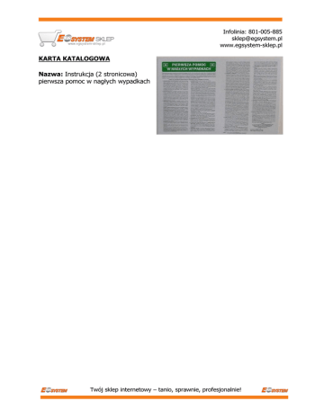 Infolinia: 801-005-885 [email protected] www.egsystem-sklep.pl KARTA KATALOGOWA Nazwa: Instrukcja (2 stronicowa) pierwsza pomoc w nagłych wypadkach Twój sklep internetowy – tanio, sprawnie, profesjonalnie!