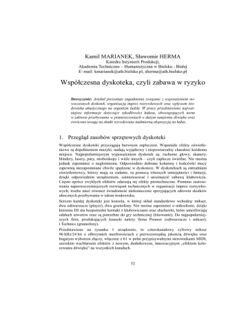 Kamil MARIANEK, Sławomir HERMA Współczesna dyskoteka, czyli