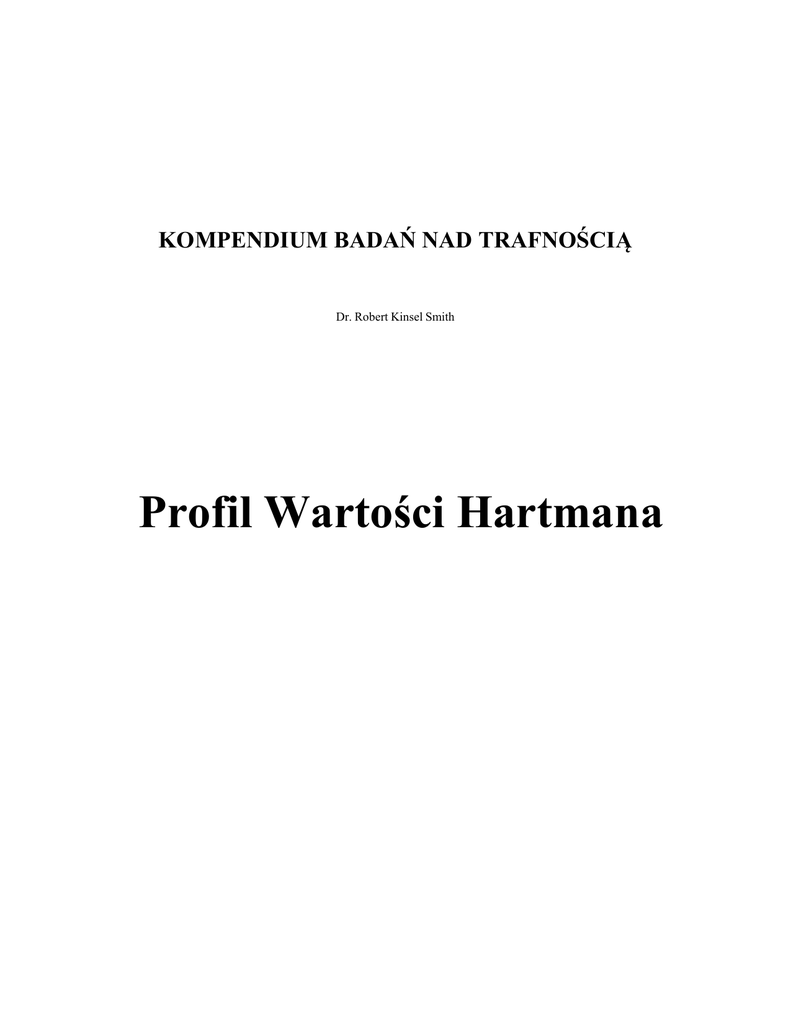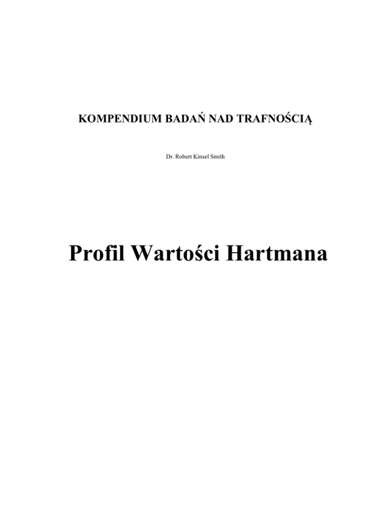 KOMPENDIUM BADAŃ NAD TRAFNOŚCIĄ Dr. Robert Kinsel Smith Profil Wartości Hartmana To kompendium jest podsumowaniem dwudziestu badań przeprowadzonych na grupach respondentów, którzy wypełnili kwestionariusz Profilu Wartości Hartmana. Stworzenie tego kompendium było możliwe dzięki niezliczonym godzinom pracy i oddaniu badaczy oraz współpracy ich pracowników. Kompendium ma służyć jako ogólne wprowadzenie i przewodnik po badaniach potwierdzających trafność i rzetelność Profilu Wartości Hartmana. Pełne wersje tych raportów są dostępne na wniosek albo od poszczególnych autorów albo od Kinsel Enterprises, Inc. To kompendium podsumowuje badania dotyczące szesnastu różnych aspektów Profilu Wartości Hartmana. Badania te wyraźnie i obiektywnie udowadniają, że Profil Wartości Hartmana to rzetelne i trafne narzędzie, użyteczne w biznesie, psychologii i rozwoju personalnym. Copyright 1998, by Kinsel Enterprises, Inc. Wszystkie prawa zastrzeżone. Żadna z części tego kompendium nie może być użyta w żaden sposób bez pisemnej zgody autora. 2 PROFIL WARTOŚCI HARTMANA Profil Wartości Hartmana został stworzony przez doktora Roberta S. Hartmana i jest własnością Instytutu Roberta S. Hartmana, Uniwersytet Tennessee. To badania wykorzystujące papier i ołówek (firma InnerMetrix, Inc. opracowała program komputerowy w celu zautomatyzowania oryginalnego narzędzia wykorzystującego papier i ołówek) polega na uszeregowaniu przez respondenta osiemnastu różnych stwierdzeń w dwóch oddzielnych listach. Ten wymuszony ranking wymaga, żeby respondent ocenił każde stwierdzenie i porównał je do wszystkich pozostałych fraz. Rankingi respondenta pokazują różne kompetencje i tendencje w ocenianiu. Profil Wartości Hartmana opiera się na nauce formalnej aksjologii. Teoria doktora Hartmana w zakresie formalnej aksjologii jest dokładnie opisana w jego książce The Structure of Value: Foundations of Scientific Axiology (Southern Illinois University Press, 1967). Aksjologia to formalny system identyfikowania i mierzenia wartości. Profil Wartości Hartmana jest jednym ze sposób pozwalających zmierzyć indywidualne skłonności i umiejętności wartościowania. Ta osobista struktura wartości (mapa drogowa i system filtrowania, który dana osoba wykorzystuje do myślenia, oceniania i podejmowania decyzji) determinuje osobowość, indywidualne postrzeganie i decyzje. Mówiąc prościej, personalna struktura wartości to sposób, w jaki dana osoba myśli. Możliwość prostego i obiektywnego zmierzenia indywidualnej struktury wartości ma znaczące konsekwencje dla zdrowia psychicznego i biznesu. Profil Wartości Hartmana eliminuje w dużym stopniu potrzebę przeprowadzania żmudnych i kosztownych badań psychologicznych dla celów klinicznych i biznesowych. Dostarcza prostego w użyciu, obiektywnego, dedukcyjnego narzędzia, które może być (i jest) wykorzystywane w doradztwie, szkoleniach i rozwoju. Biznes wykorzystuje Profil Wartości Hartmana przy selekcji kandydatów, projektowaniu szkolenia i mierzeniu skuteczności szkoleń i programów rozwoju (mierzenie wzrostu, zmiany i poprawionych umiejętności przed i po). Najbardziej wyczerpującą książką w zakresie formalnej aksjologii doktora Hartmana i wykorzystania aksjologii jest książka doktora Rema B. Edwardsa i Johna W. Davisa Forms of Values and Valuation (University Press of America, 1991). 3 TRAFNOŚĆ Weryfikacja testów to złożona dyscyplina badająca precyzyjność, niezawodność i spójność narzędzia z teoriami naukowymi je wspierającymi. Weryfikacja mierzy jak wiernie wyniki badania odzwierciedlają mierzalne zachowania lub cechy. Wyznacza również rzetelność narzędzia, gwarantując, że natura narzędzie nie wpływa znacząco na wyniki. Proces weryfikacji narzędzia jest podzielony – każdy proces mierzy inne aspekty narzędzia. Ten raport jest kompilacją podsumowań dwudziestu badań weryfikujących Profil Wartości Hartmana. Te podsumowania jasno wskazują na realne, powtarzalne, obiektywne i godne zaufania wyniki Profilu Wartości Hartmana. Wskazują również, że Profil Wartości Hartmana spełnia wymagania EEOC. (Komisja ds. Równych Szans w Zatrudnieniu). Wszystkie badania opisane w tym raporcie są zgodne z wytycznymi Amerykańskiego Stowarzyszenia Psychologicznego w zakresie analizy narzędzi psychometrycznych i spełniają standardy branżowe w zakresie analiz statystycznych. WYMAGANIA EEOC Komisja ds. Równych Szans w Zatrudnieniu (EEOC.) ustaliła, że wszystkie narzędzia psychometryczne, testy psychologiczne, testy osobowości i wszystkie inne procedury ewaluacji używane w branży muszą być zgodne z Uniwersalnymi Wytycznymi w zakresie procedur zatrudniania (1978). „Polityki i praktyki pracodawcy, którzy w niekorzystny sposób wpływają na możliwości zatrudnienia w kontekście wieku, rasy, płci czy przynależności do grupy etnicznej są nielegalne…. Decyzje pracodawcy obejmują, ale nie są ograniczone do zatrudniania, awansowania, degradacji, skierowania, licencjonowania i certyfikacji.” [Federal Registry, Vol. 43, No. 166, 8/25/78] Konkluzja z tych badań jest taka, że Profil Wartości Hartmana spełnia wymagania EEOC. i nie dyskryminuje nikogo ze względu na różne pochodzenie rasowe, płeć czy wiek. 4 DYSKRYMINACJA ZE WZGLĘDU NA WIEK Dokument w zakresie dyskryminacji ze względu na wiek (The Age Discrimination in Employment Act) z 1967 roku stwierdza, że pracodawcy nie mogą dyskryminować pracowników i kandydatów powyżej 40 roku życia w zakresie zatrudnienia i awansowania. Żeby test był legalny, nie może reprezentować żadnych statystycznych rozróżnień pomiędzy osobami powyżej 40 roku życia i poniżej 40 roku życia. Wiek: Przypadek A To badanie zostało przeprowadzone przez Value, Inc. (W. Carpenter i Edward Martin). Dwie oddzielne próby liczące po 200 osób zostały wyselekcjonowane z ponad 6 000 osób w przypadkowy