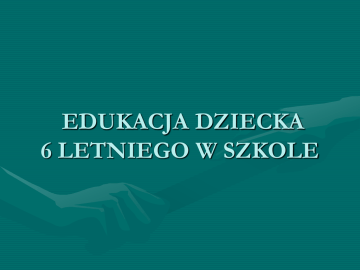 EDUKACJA DZIECKA 6 LETNIEGO W SZKOLE Edukacja 6 latka w szkole • Każde dziecko rozwija się inaczej, ma swoją dynamikę, tempo i rytm rozwoju. • Dzieci różnią się między sobą zdolnościami do nauki, sprawnością rozumowania, pamięcią, zdolnością do koncentracji uwagi, zainteresowaniem nauką. • O poziomie rozwoju dziecka decyduje szereg czynników: - wrodzone zdolności, talenty rodzicielskie, warunki w jakich dziecko się wychowuje, zdobyte dotychczasowe doświadczenia i wiele innych , Edukacja 6 latka w szkole Jeżeli 6-latek: • interesuje się otaczającym światem, posiada wiedzę o sobie ( potrafi powiedzieć jak się nazywa, ile ma lat, gdzie mieszka, zna pory roku, dni tygodnia) • posiada odpowiedni do wieku zasób słów, prawidłowo wymawia wszystkie głoski, swobodnie wypowiada się zdaniami, np. na temat swoich przeżyć, zaobserwowanego zjawiska lub oglądanego obrazka, • słucha uważnie poleceń i rozumie ich treść, • skupia uwagę na zadaniu, Edukacja 6 latka w szkole • przestrzega reguł obowiązujących w społeczności dziecięcej i współdziała w zabawach i sytuacjach zadaniowych, • zapamiętuje treść bajki, wiersza, potrafi odtworzyć je z pamięci, • ma umiejętność klasyfikowania i szeregowania przedmiotów, obrazków, • potrafi wyobrazić sobie co było wcześniej i co będzie później (zna pojęcia czasowe wczoraj, jutro), • posiada orientację w schemacie ciała i w przestrzeni (potrafi wskazać prawą, lewą rękę, rozumie treść poleceń „ zaznacz w lewym górnym rogu..”, określa położenie przedmiotów nad, pod, na), Edukacja 6 latka w szkole • jest samodzielny w czynnościach samoobsługowych (ubieranie, rozbieranie, mycie, potrzeby fizjologiczne, właściwie zachowanie przy stole podczas posiłków), oraz w sytuacji zadaniowej (wykazuje inicjatywę, podejmuje próby poradzenia sobie z trudnością, jest zainteresowany osiągnięciem celu, stara się dokończyć pracę), • dba o bezpieczeństwo własne i innych (bezpiecznie porusza się po drodze, rozumie jak zachować się w sytuacji zagrożenia, wie gdzie można otrzymać pomoc i umie o nią poprosić, • jest sprawny pod względem ruchowym i manualnym (łapie piłkę, buduje z drobnych, klocków, lepi z plasteliny, poprawnie trzyma ołówek posługuje się nożyczkami), Edukacja 6 latka w szkole • jest zainteresowany czytaniem, pisaniem i matematyką (interesuje się książkami, z uwagą słucha opowiadań, baśni, rozumie sens umownych znaków, zna i stosuje liczebniki porządkowe, dodaje i odejmuje konkretne przedmioty, liczmany). TO MOŻE ROZPOCZĄĆ NAUKĘ W SZKOLE Te cechy świadczą o wystarczającym przygotowaniu dziecka do podjęcia nauki szkolnej Edukacja 6 latka w szkole Jeżeli jednak, dziecko nie spełnia powyższych wymagań, a ponadto w jego zachowaniu widoczne są trudności w zakresie funkcjonowania społeczno-emocjonalnego: • w zabawie reaguje złością, gniewem, obraża się, odchodzi, • często wybucha złością, płaczem, reaguje impulsywnie, • zachowuje się agresywnie w stosunku do innych dzieci, nie przestrzega reguł i zasad, Edukacja 6 latka w szkole • okazuje lęk, niepokój, wycofuje się, • stara się przebywać blisko nauczyciela w stopniu utrudniającym zabawę i naukę w grupie, • unika sytuacji wymagających samodzielności, • jego koncentracja jest chwiejna, bardzo podatna na rozproszenie Edukacja 6 latka w szkole • to oznacza, iż nie osiągnęło jeszcze gotowości szkolnej i właściwą decyzją wydaje się pozostawienie go w przedszkolu. • O sukcesie dziecka bowiem bardziej decyduje jego dojrzałość emocjonalna i społeczna niż posiadane umiejętności i wiadomości. • Należy jednak pamiętać , iż „gotowość szkolna nie jest stanem, na który się czeka , ale należy ją wykształcać”. • Dlatego warto podjąć działania wspomagające rozwój dziecka a ostateczną decyzję w razie wątpliwości skonsultować z pracownikami poradni. Co zyska sześciolatek rozpoczynając naukę w szkole? • W pierwszej klasie dużo czasu przeznaczono na zabawy ruchowe i ograniczono czas siedzenia w ławkach i wypełniania ćwiczeń. • Sukces dziecka będzie zależeć nie tylko od przygotowania dziecka, ale także od przygotowania szkoły i rodziców. Co zyska sześciolatek rozpoczynając naukę w szkole? • Nauka w szkole rozwija takie cechy, jak: samodzielność, systematyczność, wytrwałość, odpowiedzialność, które ułatwią dzieciom osiąganie dobrych wyników w nauce. • Dzieci uczą się także współdziałania z dorosłymi spoza rodziny, rówieśnikami i starszymi kolegami. • • • • • • • • • • • staje się bardziej odważny, samodzielny i pewny siebie, jest bardziej otwarty w kontaktach z rówieśnikami i dorosłymi, wykorzystuje w pełni naturalny potencjał rozwojowy, korzysta z zasobów środowiska szkolnego, rozwija swoje zainteresowania korzystając z oferty zajęć pozalekcyjnych, uczy się właściwego wykorzystywania komputera i internetu, uczestniczy w zajęciach z języka obcego, w przypadku trudności korzysta z zajęć terapii pedagogicznej, dzięki systematyczności zyskuje dobre podstawy do dalszej nauki, zdobywa doświadczenia we współdziałaniu w grupie, uczy się odpowiedzialności za siebie i innych, Nowa Podstawa Programowa zwraca uwagę na trzy aspekty nowoczesnej edukacji • I. zdobywanie wiedzy • II. rozwijanie umiejętności, • III. kształtowanie umiejętności sprzyjających uczeniu się; Gotowość dziecka do podjęcia nauki szkolnej: • jest ciekawe świata, zadaje pytania i szuka odpowiedzi na nie, • dobrze czuje się w grupie rówieśników, • chętnie uczestniczy w grach, zabawach i zajęciach ruchowych, • posiada gotowość do nauki czytania, pisania i liczenia, • zgodnie funkcjonuje w zabawie i sytuacjach zadaniowych, • potrafi radzić sobie w sytuacjach konfliktowych – • rozwiązywać problemy w dr