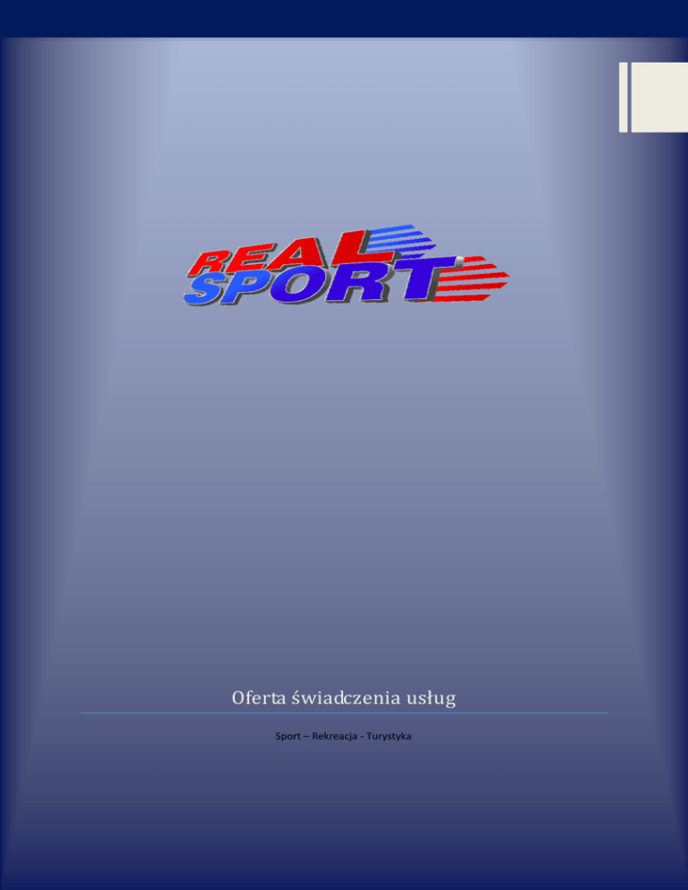Oferta świadczenia usług Sport – Rekreacja - Turystyka Strona |1 Sport Aktywność Zdrowie Oferta świadczenia usług w zakresie organizacji : 1. 2. 3. 4. 5. 6. Imprez sportowo-rekreacyjnych. Wyjazdów integracyjnych. Aktywnego wypoczynku letniego i zimowego. Pikników i festynów. Zajęć pozalekcyjnych. Treningu personalnego Strona |2 Nasza praca jest naszą pasją! List przewodni. Szanowni Państwo Pragniemy przedstawić ofertę REAL SPORT na świadczenie usług w zakresie organizacji imprez sportowo-rekreacyjnych, wyjazdów integracyjnych, aktywnego wypoczynku letniego i zimowego oraz pikników i festynów a także zajęć pozalekcyjnych i treningu personalnego. Chcielibyśmy zwrócić uwagę na następujące aspekty naszej oferty: - REAL SPORT zapewnia najwyższy poziom przygotowania każdej ze swoich imprez dzięki doświadczonej, wykwalifikowanej kadrze, która doskonale rozumie potrzeby swoich klientów. Filozofią firmy jest budowanie długotrwałych relacji z klientami, bazując na naszych kompetencjach, szerokim wachlarzu świadczonych usług i dużym doświadczeniu w rozumieniu potrzeb naszych klientów, którym zawsze jesteśmy w stanie zaproponować imprezę przygotowaną według konkretnych oczekiwań. - biorąc pod uwagę jakość naszych usług, jak również elastyczność w zakresie dostosowania naszej bieżącej działalności rekreacyjno-sportowej do Państwa potrzeb, uważamy, że nasza oferta pozwoli Państwu podjąć decyzję o delegowaniu spraw organizacyjnych na zaufanego partnera jakim jest firma REAL SPORT. Pozwoli to Państwu skoncentrować działania na realizacji swoich celów statutowych bez zbędnego poświęcania cennego czasu na organizowanie procesów, które wykraczają poza ten obszar. Wierzymy, że dzięki wyborowi REAL SPORT uzyskają Państwo komfort współpracy z kompetentnym, doświadczonym zespołem, który rozumie złożone potrzeby klientów w zakresie organizacji aktywnego wypoczynku dzieci, młodzieży i dorosłych oraz wszelkich imprez rekreacyjnych i sportowych. Z poważaniem Właściciel REAL SPORT Dariusz Ozga Strona |3 Ciekawy weekend dla Ciebie i Twojej rodziny! Korzyści z outsourcingu. Zastosowanie outsourcingu pozwoli Państwu skoncentrować się na swojej zasadniczej działalności, Główne korzyści z outsourcingu: 1. Oszczędność czasu na przygotowanie imprezy sportowo-rekreacyjnej. Posiadamy bazę, zaplecze sprzętowe oraz olbrzymie doświadczenie. 2. Zaufanie i bezpieczeństwo. Dajemy gwarancję doskonałej opieki nad dziećmi, jak również przemyślane przygotowanie programu imprezy dla dzieci i dorosłych. 3. Profesjonalizm. Zatrudniamy jedynie wysoko wykwalifikowaną kadrę, która daje gwarancję wysokiej jakości organizowanych przez nas imprez. 4. Kompleksowa organizacja imprez. Zapewniamy naszym klientom wypoczynek, proponując program imprezy od a do z. 5. Wizerunkowy sukces Twojej firmy. Promujemy zdrowy i aktywny styl życia. Dbamy o kondycję Waszej kadry oraz ich dzieci. Podsumowując, współpraca z REAL SPORT pozwoli Państwu skoncentrować się na zasadniczych obszarach działalności. Outsourcing stanowi więc strategiczne narzędzie biznesowe, które pomaga zarządzać przedsiębiorstwem i umożliwia jego szybszy rozwój. Zamiast ponosić znaczne koszty zatrudnienia wykwalifikowanej kadry w działaniach niezwiązanych z podstawową działalnością, znacznie lepszym rozwiązaniem jest skorzystanie z profesjonalnej wiedzy i doświadczenia REAL SPORT, która jest gwarantem satysfakcjonującego Państwa poziomu usług. Strona |4 Rozumiemy, że elastyczność jest ważnym kryterium wyboru partnera. O nas. Firma REAL SPORT została założona przez Dariusza Ozgę w Warszawie w roku 2006. Widział on ogromny potencjał dla rozwoju firmy świadczącej usługi rekreacyjno-sportowe klientom szukającym odskoczni od codziennej pracy. Jednocześnie zauważał, że rynek usług rekreacyjno-sportowych dla dzieci i dorosłych jest mocno ograniczony, co stwarza możliwość przedstawienia kompleksowej oferty spędzania czasu wolnego. Założyciel REAL SPORT, mający długoletnie doświadczenie doskonale zna zasady funkcjonowania rynku turystyki oraz jednostek organizujących szeroko rozumianą rekreację ruchową społeczeństwa. Dzięki zdobytemu doświadczeniu wraz ze swoim zespołem jest w stanie sprostać potrzebom klientów w zakresie przygotowania imprez o różnym charakterze. Firma REAL SPORT posiada wpis do Rejestru Organizatorów Turystyki i Pośredników Turystycznych Województwa Mazowieckiego pod numerem 991. Klientami REAL SPORT są szkoły, kluby, uczelnie, urzędy oraz inne podmioty. Nasza praca jest naszą pasją. Strona |5 Dariusz Ozga – właściciel i założyciel firmy REAL SPORT jest absolwentem Akademii Wychowania Fizycznego Józefa Piłsudskiego w Warszawie, absolwent Politechniki Radomskiej, absolwent Szkoły Głównej Handlowej w Warszawie. Jest mianowanym nauczycielem wychowania fizycznego mającym w swej siedemnastoletniej karierze nauczycielskiej duży bagaż doświadczeń. Strona |6 Oferta Cel współpracy Tylko zadowolony klient, daje nam satysfakcję z naszej pracy. Rozumiemy, że podstawowym celem naszej współpracy jest organizacja szeroko rozumianej rekreacji zarówno Państwa jak i Państwa rodzin. Jesteśmy przekonani, że dzięki współpracy właśnie z nami, uzyskacie Państwo następujące korzyści: Skoncentrowanie się na zasadniczej działalności, a co za tym idzie, zmniejszenie zaangażowania w organizację czasu wolnego i aktywnego wypoczynku swoich pracowników. Możliwość przebywania pracowników ze swoimi dziećmi jednocześnie odpoczywając i ciesząc się ich radością z zabawy z nami. Usprawnienie członków ich rodzin. - kadry pracowniczej i Pełna satysfakcja z udziału w imprezach sportowo rekreacyjnych. Model współpracy Proponujemy zacząć naszą współpracę od analizy obecnych rozwiązań z zakresu spędzania czasu wolnego Waszych pracowników i ich