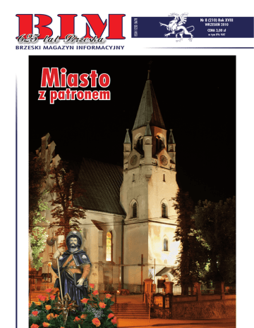 BRZESKI MAGAZYN INFORMACYJNY Miasto z patronem ISSN 1232-5678 625 lat Brzeska Nr 8 (210) Rok XVIII WRZESIEŃ 2010 CENA 3,00 zł w tym 0% VAT TEKST SPONSOROWANY BRZESKI MAGAZYN INFORMACYJNY wrzesień 2010 BRZESKI MAGAZYN INFORMACYJNY wrzesień 2010 Zapraszamy do lektury Minione wakacje pełne były ważnych dla miasta i jego mieszkańców wydarzeń. Najważniejszym było bez wątpienia przyjęcie przez miasto patrona - świętego Jakuba Apostoła Starszego. Biskup Wiktor Skworc wręczył burmistrzowi Grzegorzowi Wawryce dekret Stolicy Apostolskiej, w którym czytamy, między innymi: „Kongregacja ds. Kultu Bożego Dyscypliny Sakramentów, mocą udzielonych jej przez Benedykta XVI uprawnień, pilnie rozważywszy przedstawione sprawy i stwierdziwszy, że wybór i aprobata zostały dokonane zgodnie z wymogami prawa, przychyla się do próśb i zatwierdza świętego Jakuba Apostoła jako patrona miasta Brzeska”. Kilka tygodni temu rozpoczęły się prace związane z rewitalizacją rynku. Zostaną one zakończone w przyszłym roku i sprawią, że brzeska starówka zyska nowy, atrakcyjny dla mieszkańców i turystów wygląd. Przy okazji prac rynek odsłonił pilnie strzeżone przez lata tajemnice. Jedną z nich jest łącznica umożliwiająca łączność pomiędzy Berlinem i Moskwą. Po raz kolejny z ogromną przyjemnością piszemy o utalentowanej brzeskiej młodzieży. W tym numerze zamieszczamy wywiad z Wojtkiem Sukiennikiem, który pomyślnie zdał egzaminy do Wyższej Szkoły Teatralnej. Proponujemy także Czytelnikom wywiad z Wiesławą Urban, właścicielką pałacu Goetzów, która opowiada o remontach i planach związanych z pałacem. Zapraszam do lektury. Zofia Sitarz Wśród najlepszych Gmina Brzesko została uznana za jedną ze 100 najlepszych gmin w Polsce w ogólnopolskim Rankingu Samorządów organizowanym przez dziennik Rzeczpospolita. - To dla nas ogromne wyróżnienie – przyznaje burmistrz Grzegorz Wawryka – Organizatorzy rankingu oceniali działalność samorządu na kilku płaszczyznach. Chcieli uhonorować te samorządy, które najlepiej dbają o pod- niesienie jakości życia mieszkańców, rozwój, pozyskiwanie środków unijnych, gospodarność, wydawanie środków publicznych przy zachowaniu reguł i bezpieczeństwa finansowego. Jestem niezwykle zadowolony, bo nasza gmina uplasowała się w klasyfikacji ostatecznej na 54. miejscu w Polsce, a w Rankingu Innowacyjnym na 35. miejscu. Konkurs przebiegał w dwóch etapach. Do drugiego zakwalifikowano 564 samorządy w tym m.in. Brzesko. - Ten znaczący sukces to z pewnością godne podsumowanie i cenny sposób uhonorowania dotychczasowej działalności samorządu Brzeska i rodzaj pozytywnego wyzwania na kolejne lata owocnej pracy na rzecz gminy i jej mieszkańców. Jestem pewien, że powodzenie Brzeska stanie się przykładem dla innych małopolskich samorządów - napisał w liście gratulacyjnym marszałek Marek Nawara. Czytaj więcej na stronie 7. W numerze: Odnowa rynku - 4 Oświatowe inwestycje - 6 Remont dworca PKP - 8 Koalicja w bibliotece - 10 B I M Na kolonie z Caritasem - 11 Produkujemy przyjazne ciepło - 14 Miasto z patronem - 16-19 Nagrodzony krwiodawca - 24 Nowatorskie kierunki - 28 Najlepszy pływak w Polsce - 32 Numeracja uporządkowana - 33 W rocznicę bombardowania - 34 Nakład 700 egz. Wydawca: Gmina Brzesko; www.brzesko.pl Dyżury w redakcji: pn.-pt. w godz. 8.30-15.30. Redaguje zespół: Marek Kotfis, Zofia Sitarz - redaktor naczelny, korekta: Danuta Turlej, foto na okładce: Kamil Czernecki Adres: 32-800 Brzesko, ul. Głowackiego 51, pok. 12, tel. (14) 68-63-100, wew. 152, e-mail: [email protected] Redakcja nie zwraca materiałów nie zamówionych oraz zastrzega sobie prawo do skrótów i zmiany tytułów. Archiwalne numery BIM do nabycia w redakcji. © Wszelkie prawa zastrzeżone. Za treść ogłoszeń redakcja nie bierze odpowiedzialności. Skład i druk: Drukarnia PRINTGRAPH, Brzesko ul. A. Mickiewicza 19. Tel. 14 663 0750, www.printgraph.pl O TYM SIĘ MÓWI BRZESKI MAGAZYN INFORMACYJNY Odnowa rynku Od kilku tygodni trwają prace związane z rewitalizacją brzeskiego rynku. Jak podkreśla burmistrz Grzegorz Wawryka, uzyskana z Małopolskiego Regionalnego Programu Operacyjnego dotacja na ten cel pozwoli przywrócić rynkowi przedwojenny, interesujący pod względem architektonicznym wygląd. Po zakończeniu prac centralny plac miejski zyska nową oprawę, będzie atrakcyjny dla mieszkańców i turystów. Umowę dotyczącą finansowania przedsięwzięcia, zawartą pomiędzy Urzędem Marszałkowskim i gminą, podpisano już na początku roku. - Bez wątpienia poprawi się estetyka miasta, mieszkańcy zyskają dodatkowe miejsce do odpoczynku i relaksu. Nowy rynek, jestem o tym przekonany, przyciągnie drobny biznes, szczególnie z branży gastronomicznej. Inwestycja ta ma zarówno charakter społeczny, jak i gospodarczy czy ekonomiczny. Zabezpieczenie i renowacja obiektów dziedzictwa kulturowego w sposób znaczący wpłynie na poprawę turystycznej atrakcyjności Brzeska. Centralny plac miasta będzie miejscem, gdzie odbywać się będą uroczystości, czy inne znaczące dla miasta i jego mieszkańców wydarzenia - mówi burmistrz Grzegorz Wawryka. Za unijne pieniądze - Pieniądze, jakie gmina pozyskała na wykonanie prac związanych z rewitalizacją rynku, pochodzą z Małopolskiego Regionalnego Programu Operacyjnego. Bez tego wsparcia realizacja projektu nie byłaby możliwa. Na etapie rozpatrywania wniosku kwotę potrzebną na wykonanie rewitalizacji oszacowano na 6,5 miliona złotych, jednak już w momencie rozstrzygania przetargu wyłaniającego wykonawcę okazało się, że odnowa rynku kosztować będzie zdecydowanie mniej, bo 5,2 miliona złotych. 30 procent tej kwoty to wkład własny gminy. Prace wykonuje firma „Szarek” z Nowego Sącza – wyjaśnia Rafał Najdała, kierownik Biura Funduszy Europejskich. Jaki wygląd będzie mieć rynek po zakończeniu prac? Plac wybrukowany zosta