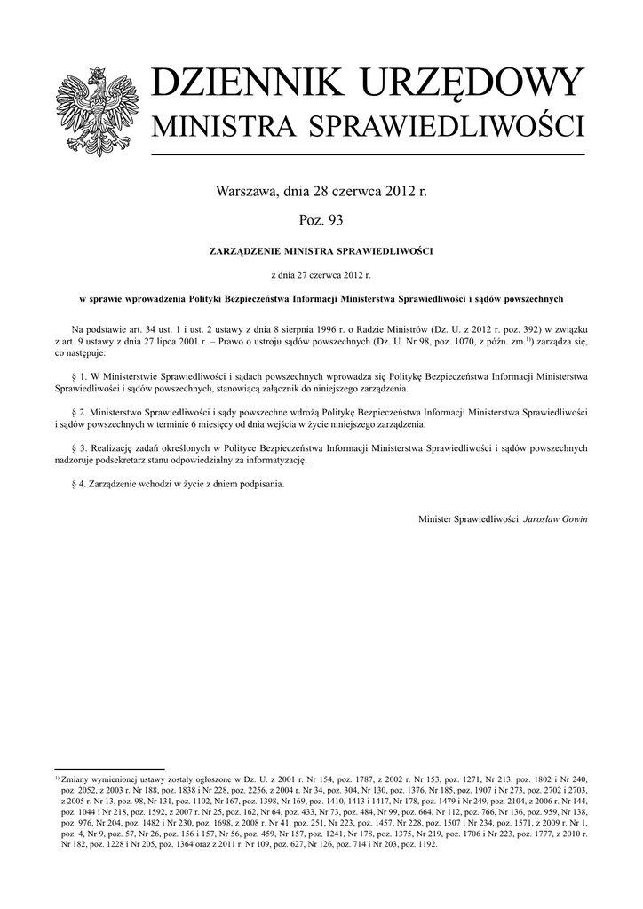 Pozycja 93 w sprawie wprowadzenia Polityki Bezpieczeństwa