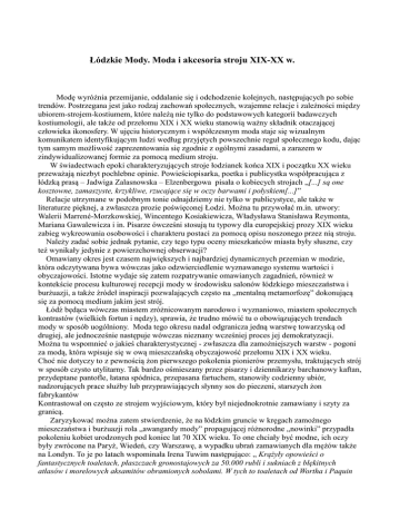 Łódzkie Mody. Moda i akcesoria stroju XIX-XX w. Modę wyróżnia przemijanie, oddalanie się i odchodzenie kolejnych, następujących po sobie trendów. Postrzegana jest jako rodzaj zachowań społecznych, wzajemne relacje i zależności między ubiorem-strojem-kostiumem, które należą nie tylko do podstawowych kategorii badawczych kostiumologii, ale także od przełomu XIX i XX wieku stanowią ważny składnik otaczającej człowieka ikonosfery. W ujęciu historycznym i współczesnym moda staje się wizualnym komunikatem identyfikującym ludzi według przyjętych powszechnie reguł społecznego kodu, dając tym samym możliwość zaprezentowania się zgodnie z ogólnymi zasadami, a zarazem w zindywidualizowanej formie za pomocą medium stroju. W świadectwach epoki charakteryzujących stroje łodzianek końca XIX i początku XX wieku przeważają niezbyt pochlebne opinie. Powieściopisarka, poetka i publicystka współpracująca z łódzką prasą – Jadwiga Zalasnowska – Elzenbergowa pisała o kobiecych strojach „[...] są one kosztowne, zamaszyste, krzykliwe, rzucające się w oczy barwami i połyskiem[...]” Relacje utrzymane w podobnym tonie odnajdziemy nie tylko w publicystyce, ale także w literaturze pięknej, a zwłaszcza prozie poświęconej Łodzi. Można tu przywołać m.in. utwory: Walerii Marrené-Morzkowskiej, Wincentego Kosiakiewicza, Władysława Stanisława Reymonta, Mariana Gawalewicza i in. Pisarze ówcześni stosują tu typowy dla europejskiej prozy XIX wieku zabieg wykreowania osobowości i charakteru postaci za pomocą opisu noszonego przez nią stroju. Należy zadać sobie jednak pytanie, czy tego typu oceny mieszkańców miasta były słuszne, czy też wynikały jedynie z powierzchownej obserwacji? Omawiany okres jest czasem największych i najbardziej dynamicznych przemian w modzie, która odczytywana bywa wówczas jako odzwierciedlenie wyznawanego systemu wartości i obyczajowości. Istotne wydaje się zatem rozpatrywanie omawianych zagadnień, również w kontekście procesu kulturowej recepcji mody w środowisku salonów łódzkiego mieszczaństwa i burżuazji, a także źródeł inspiracji pozwalających często na „mentalną metamorfozę” dokonującą się za pomocą medium jakim jest strój. Łódź będąca wówczas miastem zróżnicowanym narodowo i wyznaniowo, miastem społecznych kontrastów (wielkich fortun i nędzy), sprawia, że trudno mówić tu o obowiązujących trendach mody w sposób uogólniony. Moda tego okresu nadal odgranicza jedną warstwę towarzyską od drugiej, ale jednocześnie następuje wówczas nieznany wcześniej proces jej demokratyzacji. Można tu wspomnieć o jakieś charakterystycznej - zwłaszcza dla zamożniejszych warstw - pogoni za modą, która wpisuje się w ową mieszczańską obyczajowość przełomu XIX i XX wieku. Choć nie dotyczy to z pewnością żon pierwszego pokolenia pionierów przemysłu, traktujących strój w sposób czysto utylitarny. Tak bardzo ośmieszany przez pisarzy i dziennikarzy barchanowy kaftan, przydeptane pantofle, łatana spódnica, przepasana fartuchem, stanowiły codzienny ubiór, nadzorujących prace służby lub przyprawiających słynny sos do pieczeni, starszych żon fabrykantów Kontrastował on często ze strojem wyjściowym, który był niejednokrotnie zamawiany i szyty za granicą. Zaryzykować można zatem stwierdzenie, że na łódzkim gruncie w kręgach zamożnego mieszczaństwa i burżuazji rola „awangardy mody” propagującej różnorodne „nowinki” przypadła pokoleniu kobiet urodzonych pod koniec lat 70 XIX wieku. To one chciały być modne, ich oczy były zwrócone na Paryż, Wiedeń, czy Warszawę, a wypadku ubrań zamawianych dla mężów także na Londyn. To je po latach wspominała Irena Tuwim następująco: „ Krążyły opowieści o fantastycznych toaletach, płaszczach gronostajowych za 50.000 rubli i sukniach z błękitnych atłasów i morelowych aksamitów obramionych sobolami. W tych to toaletach od Wortha i Paquin występowały znane z urody łódzkie królowe […] nazywano je imieniem jak panujące, owe Bebi i Lale. W Łodzi zjawiały się zresztą rzadko przelotne jak żurawie[...]”. Za sprawą podróży, bywania w modnych kurortach,śledzenia na bieżąco trendów opisanych w żurnalach, na ulicach pojawiały się modowe nowinki. Moda tego okresu oscyluje między wprowadzoną wówczas konfekcją gotową, a miarowym krawiectwem, pozwalającym na większe zindywidualizowanie stroju. Wystawa „Łódzkie mody. Moda i akcesoria strojów XIX – XX w.” podejmuje próbę odtworzenia wyglądu garderoby modnej łodzianki i łodzianina końca XIX i pierwszej tercji XX wieku, na podstawie analizy zarówno zachowanych nielicznych zabytków o ustalonej proweniencji, materiałów ikonograficznych, a także materiałów archiwalnych i źródłowych. W przestrzeni galeryjnej starano się oddać istotę kulturowych zagadnień recepcji mody w środowisku łódzkiego mieszczaństwa i burżuazji. Prezentując rodzaje, typy i zmieniające się formy konstrukcji ubioru oraz jego akcesoriów. Chcąc zaprezentować stroje domowe, codzienne, wizytowe, wieczorowe i balowe, a także odzież sportową i dziecięcą podzielono ekspozycję na następujące sekwencje: Manewry bieliźniarstwa – bielizna osobista i nocna ; Przed lustrem – higiena i kosmetyki ; Moda dziecięca ; W buduarze i salonie – moda domowa i wizytowa ; Łódzkie pory roku – stroje codzienne, okrycia wierzchnie i nakrycia głowy; Letniska i promenady kurortów – stroje spacerowe, rekreacyjne i sportowe ; Bale, rauty, reduty oraz wieczory w teatrze – stroje wieczorowe i balowe. Przy tworzeniu wystawy „Łódzkie mody. Moda i akcesoria stroju XIX-XX w.” wykorzystano zarówno obiekty pochodzące z lokalnych firm i pracowni, jak również o łódzkiej proweniencji, zamawiane i kupowane często przez najzamożniejszych łodzian w europejskich stolicach. Należy jednak zaznaczyć, że z u