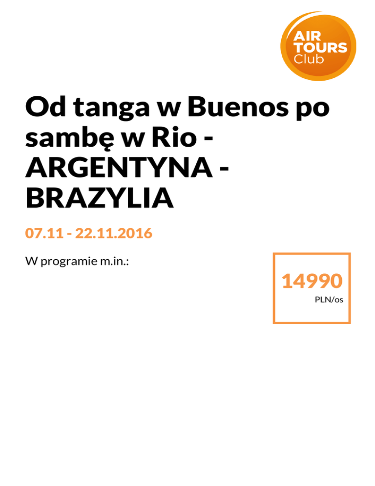 Od tanga w Buenos po sambę w Rio ARGENTYNA BRAZYLIA 07.11 - 22.11.2016 W programie m.in.: 14990 PLN/os