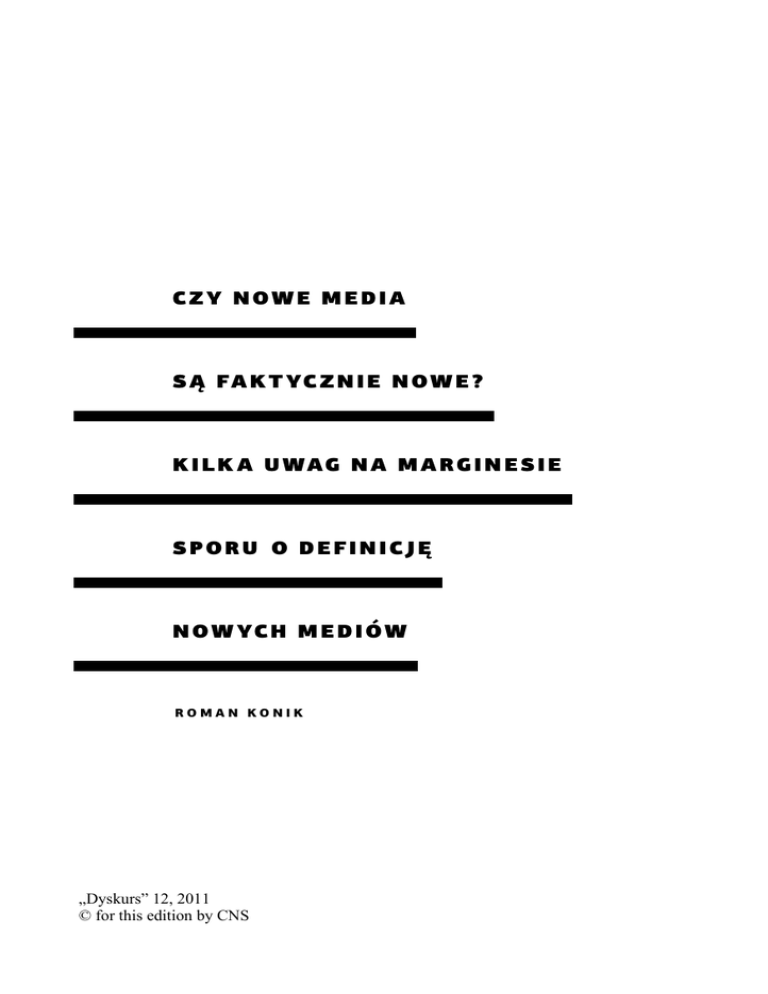 Czy nowe media są faktyCznie nowe? kilka uwag na marginesie