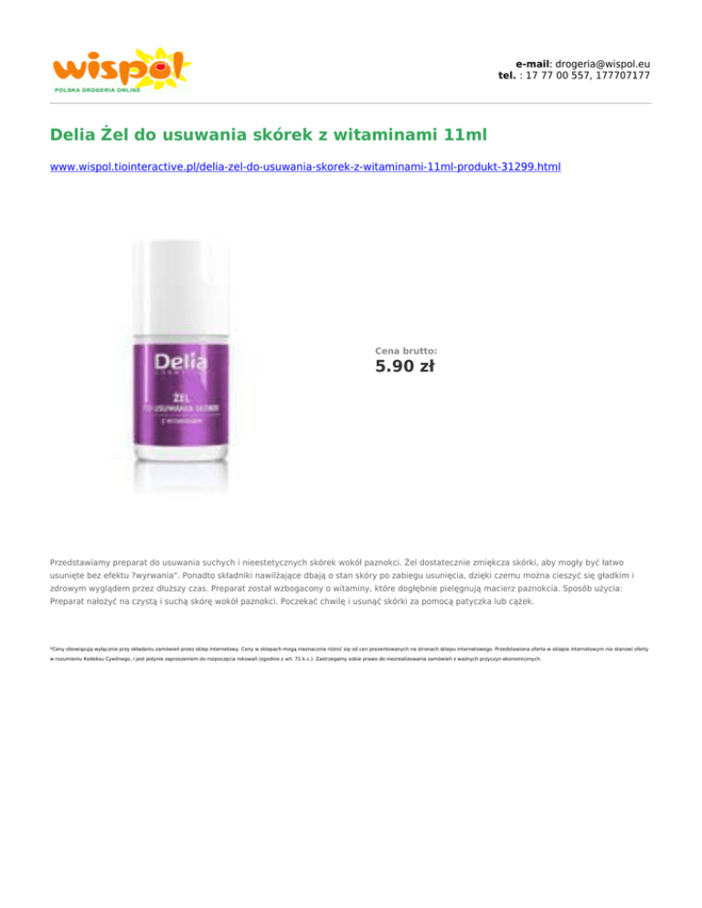 Delia Żel do usuwania skórek z witaminami 11ml 5.90 zł