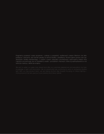 Pragniemy poszerzyć nasze spojrzenie i, patrząc w przyszłość, zaoferować naszym Klientom nie tylko przeżycia i doznania, ale również wiedzę na temat światła i oświetlenia. Kontynuujemy prace nad uzyskiwaniem światła kreatywnego. Z naszym nowym zespołem produktowym wykonujemy kolejny krok naprzód, koncentrując się na oświetleniu wnętrz - produktach niszowych, które są wykorzystywane w roli twórców nastroju i detali we wnętrzu. We wish to widen our gaze, look ahead and offer our customers experiences and sensations, but also knowledge of light and illumination. We at LampGustaf are continuing to work on achieving creative light. With our new product team, we are taking another step forward, focusing on interior lighting – niche products that are used as mood creators and interior details.