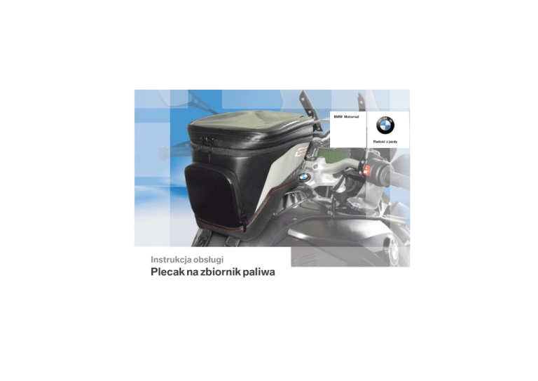 BMW Motorrad Radość z jazdy Instrukcja obsługi Plecak na zbiornik paliwa Wskazówki ogólne Wprowadzenie z Torba na zbiornik paliwa BMW Motorrad to idealny towarzysz wycieczek motocyklowych. Firma BMW Motorrad jest gwarantem wysokiej jakości – uwidacznia się to w eleganckiej stylistyce i perfekcyjnym wykonaniu. Jej wytrzymała konstrukcja i efektywne połączenie materiałów gwarantują optymalne zamocowanie torby również przy szybkiej jeździe. Przy wykonywaniu poniższych prac niepewnie ustawiony motocykl może się przewrócić. Zadbać o to, aby motocykl stał stabilnie. Inne środki czyszczące mogą uszkodzić powierzch- nie. Torbę na zbiornik paliwa w razie potrzeby można oczyścić wodą lub wodą z łagodnym mydłem i wilgotną ściereczką. Odsyłacz do strony z dalszymi informacjami. Skróty i symbole Oznacza koniec informacji dotyczącej akcesoriów lub wyposażenia. Oznacza wskazówki ostrzegawcze, których należy bezwzględnie przestrzegać ze względu na bezpieczeństwo własne, bezpieczeństwo innych oraz aby uchronić swój motocykl przed uszkodzeniem. Szczególne wskazówki w celu ułatwienia pracy przy czynnościach z zakresu obsługi, kontroli i regulacji oraz pracach konserwacyjnych. Oznacza koniec wskazówki. Instrukcja wykonywania czynności. Wynik czynności. Moment dociągający. Dane techniczne Spis treści 1 Widoki elementów . . . . . . . 2 Zawartość zestawu . . . . . . . . . . . 2 Plecak na zbiornik paliwa . . . . . 3 2 Montaż . . . . . . . . . . . . . . . . . . . . 4 Montaż mocowań . . . . . . . . . . . . 4 3 Obsługa . . . . . . . . . . . . . . . . . . 6 Obsługa sakwy na zbiornik . . . . . . . . . . . . . . . . . . . . . . . 6 4 Dane techniczne . . . . . . . . . 8 Dane techniczne . . . . . . . . . . . . . 8 04.2013, 1. wydanie, 17 1 Widoki elementów 2 z Zawartość zestawu 1 2 3 4 5 Plecak na zbiornik paliwa Śruba M6 Mocowanie torby na zbiornik paliwa z przodu Mocowanie z tyłu Pas barkowy 1 2 3 4 5 Kieszeń główna Kieszeń na mapy Torba wewnętrzna Torba zewnętrzna Zwiększenie pojemności 1 3 Widoki elementów Plecak na zbiornik paliwa z 2 Zdemontować siedzenie kierowcy Demontaż śruby do przedniego mocowania Montaż przednich i tylnych mocowań Montaż 4 Montaż mocowań z Zdemontować śrubę 1. Obrócić kluczyk motocykla 1 przeciwnie do ruchu wskazówek zegara i przytrzymać, podnosząc przed tym tylną część siedzenia kierowcy 2. Zdjąć siedzenie kierowcy 2 z mocowania siedzenia 3 ku tyłowi. Położyć siedzenie kierowcy obiciem do dołu na czystej powierzchni. Podczas jazdy bez sakwy na zbiornik przednie mocowanie może niekorzystnie wpływać na skręt kierownicy. Zdjąć przednie mocowanie poprzez rozłączenie elementu rzepowego (tylne mocowanie może zostać przy motocyklu). Przyłożyć przednie mocowanie 1 do środkowego elementu osłony 2 i zamocować za pomocą nowej śruby 3. Przednie mocowanie sakwy na zbiornik na ramie Zamontować siedzenie kierowcy 2 5 Montaż 8 Nm z Przełożyć języczki 1 tylnego mocowania 2 przez otwory 3 w regulacji siedzenia 4 i zapiąć rzepy. Przed montażem siedzenia kierowcy odchylić tylne mocowanie 2 w górę. Włożyć siedzenie kierowcy 1 w mocowanie siedzenia 2 z lewej i z prawej strony, zwracając przy tym uwagę na paski 3 mocowania. Docisnąć tylną część siedzenia kierowcy lekko w przód a następnie silnie w dół. Mocowanie powinno zaskoczyć z trzaskiem w blokadę. Obsługa sakwy na zbiornik 6 Mocowanie torby na zbiornik paliwa Obsługa 3 z Pył i brud mogą uszkodzić lakier. Górną część środkowej części osłony i spód sakwy na zbiornik paliwa należy dokładnie wyczyścić. W razie dłuższego użytkowania sakwy na zbiornik paliwa należy regularnie czyścić powierzchnie stykowe. Sakwa na zbiornik paliwa może się poluzować. Pasy należy naprężyć w taki sposób, aby sakwa na zbiornik paliwa bezpiecznie i mocno przylegała do środkowej części osłony. Założyć sakwę na zbiornik 1 na środkowy element osłony 2. Połączyć zatrzaski 3 i 4. Połączyć zatrzaski 1 i 2. Zamocować sakwę na zbiornik naprężając pasy 3. Nadmierną długość pasów 3 włożyć u góry w szlufki 4. Zamykanie torby wewnętrznej Napiąć taśmę 1 i zwinąć 3x. Połączyć zatrzaski 1. 3 7 Obsługa Jeżeli torba wewnętrzna jest przypięta z boku, ochrona przed przesiąkaniem wody nie jest zapewniona. z Aby ułatwić załadunek torby na zbiornik paliwa, zwinąć torbę wewnętrzną 1 i przypiąć sznurkami 2. 4 Dane techniczne 8 z Dane techniczne Powłoka Poliuretan termoplastyczny, 50 % Poliuretan, 50 % Materiał wierzchni Poliuretan termoplastyczny, 100 % Podszewka Poliamid, 100 % Załadunek sakwy na zbiornik max 5 kg Pojemność torby na zbiornik paliwa ok. 12 l, bez zwiększonej pojemności ok. 4 l, Zwiększenie pojemności W zależności od zakresu wyposażenia i akcesoriów Twojego produktu BMW Motorrad, a także zależnie od wersji dla danego kraju mogą wystąpić różnice w porównaniu z rysunkami i opisami. Jakiekolwiek roszczenia z tego tytułu są wykluczone. Dane dotyczące wymiarów, masy, zużycia paliwa i mocy należy stosować z zachowaniem odpowiedniej tolerancji. Zastrzega się możliwość wprowadzania zmian w konstrukcji, wyposażeniu i akcesoriach. Zastrzega się możliwość pomyłek. ©2013 Bayerische Motoren Werke Aktiengesellschaft 80788 München, Niemcy Przedruk, również fragmentów, wyłącznie za pisemną zgodą BMW Motorrad, Aftersales. Oryginalna instrukcja obsługi, wydrukowana w Niemczech. Nr zamówieniowy: 77 01 8 543 193 04.2013, 1. wydanie, 17 *77018543193* *77018543193* *77018543193*