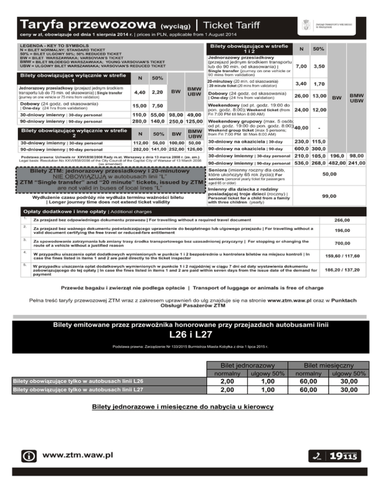 Ceny biletów linii L26 i L27
