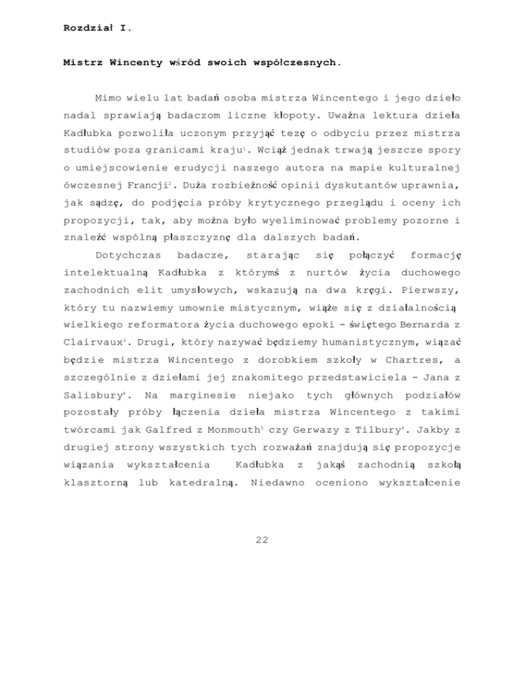 Rozdzia» I. Mistrz Wincenty wÑród swoich wspó»czesnych. Mimo wielu lat bada½ osoba mistrza Wincentego i jego dzie»o nadal sprawiaj badaczom liczne k»opoty. Uwaóna lektura dzie»a Kad»ubka pozwoli»a uczonym przyj tez o odbyciu przez mistrza studiów poza granicami kraju1. Wció jednak trwaj jeszcze spory o umiejscowienie erudycji naszego autora na mapie kulturalnej ówczesnej Francji2 . Duóa rozbieónoÑ opinii dyskutantów uprawnia, jak sdz, do podjcia próby krytycznego przegldu i oceny ich propozycji, tak, aby moóna by»o wyeliminowa problemy pozorne i znaleï wspóln p»aszczyzn dla dalszych bada½. Dotychczas badacze, intelektualn Kad»ubka z starajc którymÑ z si po»czy nurtów óycia formacj duchowego zachodnich elit umys»owych, wskazuj na dwa krgi. Pierwszy, który tu nazwiemy umownie mistycznym, wióe si z dzia»alnoÑci wielkiego reformatora óycia duchowego epoki - Ñwitego Bernarda z Clairvaux3 . Drugi, który nazywa bdziemy humanistycznym, wiza bdzie mistrza Wincentego z dorobkiem szko»y w Chartres, a szczególnie z dzie»ami jej znakomitego przedstawiciela - Jana z Salisbury4 . Na pozosta»y próby marginesie niejako tych g»ównych podzia»ów »czenia dzie»a mistrza Wincentego z takimi twórcami jak Galfred z Monmouth5 czy Gerwazy z Tilbury6. Jakby z drugiej strony wszystkich tych rozwaóa½ znajduj si propozycje wizania wykszta»cenia klasztorn lub Kad»ubka katedraln. z Niedawno 22 jakÑ zachodni oceniono szko» wykszta»cenie Kad»ubka jako odpowiadajce Ñredniowiecznemu trivium i uznano je za stojce znacznie ponióej erudycji dwunastowiecznej elity intelektualnej7 . Wydaje si, óe takie twierdzenie zapoznaje jednak zupe»nie wnioski takiego znawcy przedmiotu jak O. Balzer. Badacz ten, opierajc si na stwierdzonej w pracach w»asnych i poprzednich badaczy erudycji prawniczej Kad»ubka, wykluczy» moóliwoÑ zdobycia takiego wykszta»enia w szkole klasztornej i odniesienia go do poziomu trivium 8. W pracy tej uznaj za bardziej prawdopodobne Wincenty zdoby» twierdzenie magisterium we O. Balzera, Francji. Uwaóam óe mistrz za wióc interpretacj romanistyczn O. Balzera, potwierdzon ostatnio przez A. Vetulaniego9. Do ustalenia pozostaje jeszcze krg mistrzów i nauczycieli Kad»ubka. Rozpatrzmy najpierw propozycj powizania formacji intelektualnej mistrza Wincentego z krgiem cysterskim i dzie»ami Ñw. Bernarda z Clairvaux. Sam charakter mistyki spekulatywnej pozwala nam do»czy tutaj Hugona od Ñw. Wiktora. Jednakóe jedna tylko wt»a ni wióe Kad»ubka z Hugonem od Ñw. Wiktora. Jest ni termin oculus rationis10 (poznanie samego siebie) wystpujcy w pismach Hugona wraz z dwoma innymi terminami oculus carnis (poznanie Ñwiata zewntrznego) i oculus contemplacionis (którym ogarnia i za pomoc którego zespala si z Bogiem). Otóó, wydaje si, óe nie jest konieczne przyjcie tu tezy o jakichÑ wikszych kontaktach Kad»ubka ze szko» Wiktorynów. Zwrot ten móg» przej mistrz Wincenty od Alana z Lille, który pos»uguje si nim w swoim Tractatus de virtutibus et vitiis et de donis spiritus sancti11. Hipoteza ta wydaje si tym bardziej prawdopodobna, óe autor ten równieó z innych wzgldów zdaje si by bliski Kad»ubkowi. Wp»yw 23 Bernarda z Clairvaux w pierwszej po»owie XII wieku na óycie intelektualne i duchowe ówczesnej Europy trudno doprawdy przeceni. Jest równieó rzecz jasn, óe skoro tylko stwierdzono Ñlady duóej erudycji w Kronice mistrza Wincentego, spróbowano po»czy je z tym nurtem óycia duchowego, który tworzyli w XII wieku cystersi. Jednak specyficzny charakter Kroniki utrudnia» to zadanie. Mistrz Wincenty, który wydaje si by propagatorem humilitas12 nawet u w»adców i zdecydowanym zwolennikiem supremacji ius divinum nad prawem cywilnym13, tylko kilka razy odwo»uje si do Ojców KoÑcio»a14 , nie mówic juó o póïniejszych Ñredniowiecznych. Imponuje natomiast znajomoÑci literatury klasycznej15 , w tym Justyna16, i prawa rzymskiego17. Z dwóch powaóniejszych prób zestawienia dzie»a Kad»ubka z dorobkiem wielkiego opata uczynionych przez O. Balzera i D. Borawsk waónoÑ badawcz zachowuje tylko ta ostatnia. Argumenty O. Balzera nie w pe»ni przekonuj ze wzgldu na ma»y materia» porównawczy (dwa listy Ñw. Bernarda)18 i zupe»ny brak analizy zachowanych przecieó zbiorów listów innych autorów - bliószych chronologicznie Kad»ubkowi (np. Piotr z Blois). Autorka drugiego opracowania zestawi»a ustpy z òywota Ñw. Bernarda pióra Gaufrida z Clairvaux przejte póóniej przez Alana z innego autora biografii s»awnego opata. Otóó pierwsze wraóenie, jakie si od razu narzuca przy lekturze tego artyku»u, to pewna nierównomiernoÑ w roz»oóeniu akcentów krytycznych. Autorka, niewtpliwie s»usznie, podwaóa przekonanie o zwizkach mistrza Wincentego z Janem z Salisbury, uznajc je za nieudowodnione i tu analityczny umys» badaczki przekonuje czytelnika. JednoczeÑnie zestawiajc tekst Kad»ubka z óywotami Bernarda z Clairvaux 24 dowodzi w gruncie rzeczy tego samego. Z podanych przez autork fragmentów tylko pierwszy: oliva fructifera, vitis abundans, palma florida19 - przypomina tekst Kad»ubka oliva quaedam generosior inter ligna fructifera (...) olei non tam stilens quam inundans. Do tego autorka dodaje bezpoÑredni cytat z kazania Ñw. Bernarda: O oliva fructifera: oleum laetitiae ungens et lucens20 . WartoÑ jednak tej zbieónoÑci przekreÑla fakt, ió sam termin oliva fructifera pochodzi z Wulgaty i znajduje si midzy innymi w znanym dziele wspomianego juó Alana z Lille, Distinctiones dictionum theologicarum sive Summa Quot modis 21. Dzie»o to wed»ug M.-Th. d'Alverny powsta»o z notatek do wyk»adów mistrza Alana, móg» wic Wincenty zapozna si z nimi w latach nauki22 . Zwrot ten tak objaÑnia Alan pod has»em oliva: "Dicitur iustus, unde David: Quasi oliva fructifera"23. JeÑli przyjmiemy,óe Wincenty zetkn» si z dorobkiem Alana, o czym dalej, to nie trzeba nam dla tej paraleli znajomoÑci pism Ñw. Bernarda. Mog»a go do ni