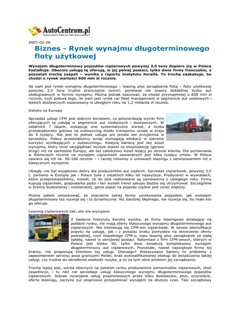 Biznes - Rynek wynajmu długoterminowego floty u ytkowej