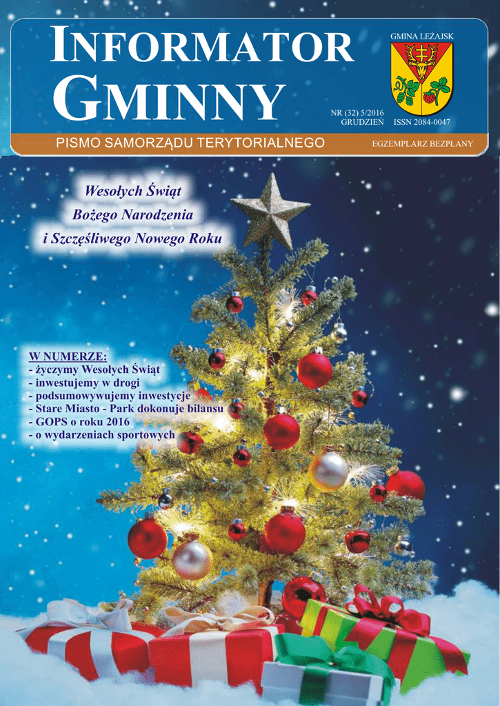 INFORMATOR GMINNY GMINA LEŻAJSK NR (32) 5/2016 GRUDZIEŃ PISMO SAMORZĄDU TERYTORIALNEGO Wesołych Świąt Bożego Narodzenia i Szczęśliwego Nowego Roku W NUMERZE: - życzymy Wesołych Świąt - inwestujemy w drogi - podsumowywujemy inwestycje - Stare Miasto - Park dokonuje bilansu - GOPS o roku 2016 - o wydarzeniach sportowych ISSN 2084-0047 EGZEMPLARZ BEZPŁANY 2 Podsumowanie Koniec grudnia to okres, kiedy z jednej strony myślimy, co nas czeka w kolejnym roku, a z drugiej podsumowujemy i wspominamy to, co minęło. Jak prześledzę po kolei wszystkie minione miesiące tego roku, to stwierdzam, że wydarzyło się dużo, dużo dobrego. Jest za co dziękować i z czego się cieszyć. A cieszy każdy wybudowany odcinek drogi, wodociągu, a także każdy sukces odniesiony przez nasze jednostki czy pojedynczych mieszkańców. W ostatnich kilku dniach wielu z Was zastanawiało się, dlaczego budujemy drogi w grudniu? Oto odpowiedź! Pod koniec listopada otrzymaliśmy wiadomość z Urzędu Wojewódzkiego, że jest możliwość otrzymania pieniędzy na drogi, ale pod warunkiem, że wykonamy je do 20 grudnia. Mogliśmy zrezygnować z tych pieniędzy i czekać spokojnie na Święta, albo podjąć ryzyko i wybudować kolejne drogi. Wybraliśmy to drugie rozwiązanie. Kiedy piszę te słowa (poniedziałek 12.12) za oknem pada deszcz, prognozy mówią o nadchodzącym ochłodzeniu, a nam potrzeba trzech dni na zakończenie prac na drogach i parkingu i myślę, że uda się doprowadzić sprawę do końca. Do tego nie ułatwiają nam życia kontrole, których na przełomie listopada i grudnia mieliśmy aż trzy. Nie mam nic przeciwko kontrolom, niech sobie będą, ale nie w takim gorącym okresie, kiedy pracownicy muszą rozliczać zrealizowane inwestycje. Być może przybędzie mi po tym roku parę siwych włosów i to jest cenne (kiedyś trzeba je mieć), ale nieoceniony jest miniony czas, który pozwolił mi zdobyć nowe doświadczenie. Mam nadzieję, że i mnie i Państwu wspomnienie minionych dni tego roku sprawi wiele radości! Oddajemy w Państwa ręce ostatni w tym roku kalendarzowym numer Informatora Gminnego. Ma on charakter podsumowania wielu działań na terenie gminy. Rok 2016 był obfity w różnorodne wydarzenia. Warto zwrócić uwagę na gminne inwestycje zrealizowane lub rozpoczęte w bieżącym roku, ze szczególnym uwzględnieniem pomocy finansowej dla powiatu leżajskiego. Piszemy też o działalności spółki Stare Miasto – Park, która została zauważona i doceniona za pozytywne efekty pracy statuetką Podkarpackiej Nagrody Gospodarczej podczas uroczystej gali w dniu 21 listopada 2016 r. Prezentujemy również dane podsumowujące realizacje różnych form pomocy dla mieszkańców gminy przez GOPS. Dotyczą one głównie programu 500+ i innych form wsparcia finansowego. O finansowych podsumowaniach roku można mówić również w przypadku prezentacji wydatków w ramach funduszu sołeckiego Szanowni Państwo! Święta Bożego Narodzenia to okres, kiedy przypominamy sobie o wzajemnej życzliwości. Smutne jest to, że słowo życzliwość pojawia się w wielu życzeniach, a tak bardzo brakuje go w codziennych relacjach. I wyznam szczerze, że jednym z moich noworocznych marzeń jest to, aby serdeczność i zrozumienie towarzyszyły nam na co dzień, a nie tylko od święta. Myślę, że każdy tęskni za życzliwie wyciągniętą ręką, uśmiechem na twarzy, drobnym gestem wdzięczności. To przecież tak mało, a tak wiele może znaczyć. I może warto w tym miejscu przytoczyć słowa Matki Teresy: „Życzliwe słowa mogą być krótkie i łatwe do wymówienia, ale ich echa są naprawdę nieskończone". Na Święta i po Świętach życzę Państwu Nieskończonej Życzliwości. Stary Rok mija, lecz marzenia zostają.... Życzę Państwu, aby Nowy 2017 Rok przyniósł zdrowie, radość, pomyślność i spełnienie wszystkich marzeń. Krzysztof Sobejko w poszczególnych miejscowościach. O realizacji zadań w roku 2016 w oświacie oraz wyzwań związanych z wprowadzaniem reformy szkolnictwa przeczytacie Państwo w artykule poświęconym sesji Rady Gminy z udziałem Małgorzaty Rauch, Podkarpackiego Kuratora Oświaty. W tym numerze informujemy również o imprezach i uroczystościach organizowanych przez GOK, który na podsumowanie roku przygotowuje musical „Romeo i Julia”. Ciekawym tematem może być program związany z naborem wniosków na odnawialne źródła energii, który prezentujemy poniżej. Nie zabraknie też informacji dla miłośników sportu, dlatego zachęcamy Państwa do lektury naszego pisma. Z poważaniem Zespół Redakcyjny Informatora Gminnego Premier Beata Szydło z wizytą w Leżajsku Prosto z Kongresu 590, w czwartkowe popołudnie (17 listopada) premier Beata Szydło przyjechała do Leżajska, aby spotkać się z nauczycielami, posłami oraz władzami samorządowymi. Wbrew temu, co można było przeczytać i zobaczyć na stronie internetowej powiatu leżajskiego, w spotkaniu wziął także udział wójt Krzysztof Sobejko. Dowodem tego jest zdjęcie obok. Wizyta premier była dobrą okazją do przybliżenia założeń przygotowywanej przez rząd reformy edukacji oraz roli, jaką w niej mają pełnić samorządy, nauczyciele i rodzice. Przed swoim wystąpieniem Beata Szydło zwiedziła ZST w Leżajsku. Wyróżnienie dla KGW w Brzózie Dziennik Nowiny wraz z Podkarpacką Izbą Rolniczą zorganizował plebiscyt na najlepsze Koło Gospodyń Wiejskich roku 2016. Celem ogłoszonego konkursu było zaprezentowanie KGW z województwa podkarpackiego, przybliżenie ich działalności oraz docenienie społecznej pracy. Plebiscyt wpisał się też w obchodzoną w tym roku 150 rocznicę powstania KGW na ziemiach polskich. Do konkursu zgłosiło się 95 kół m.in. Koło Gospodyń Wiejskich z Brzózy Królewskiej. 1 grudnia w Miejskim Centrum Kultury - Kino "Kosmos" w Dębicy podczas uroczystej gali zostały ogłoszone wyniki konkursu. Kapituła plebiscytu w uznani