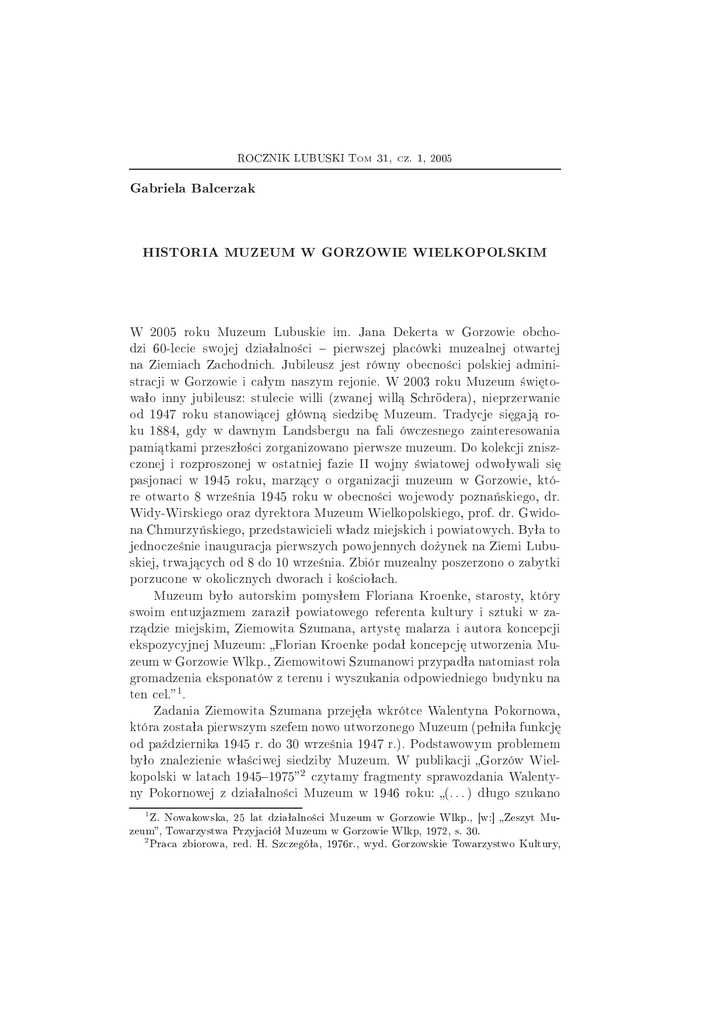 Gabriela Balcerzak, Historia muzem w Gorzowie Wlkp.